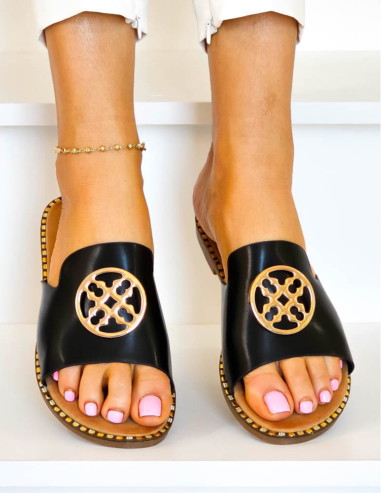 Eleganckie Klapki Damskie z Ozdobą Versage Czarne