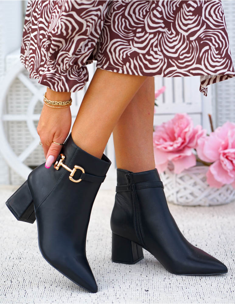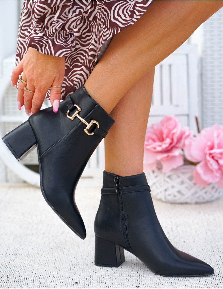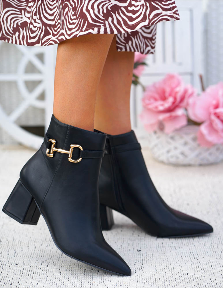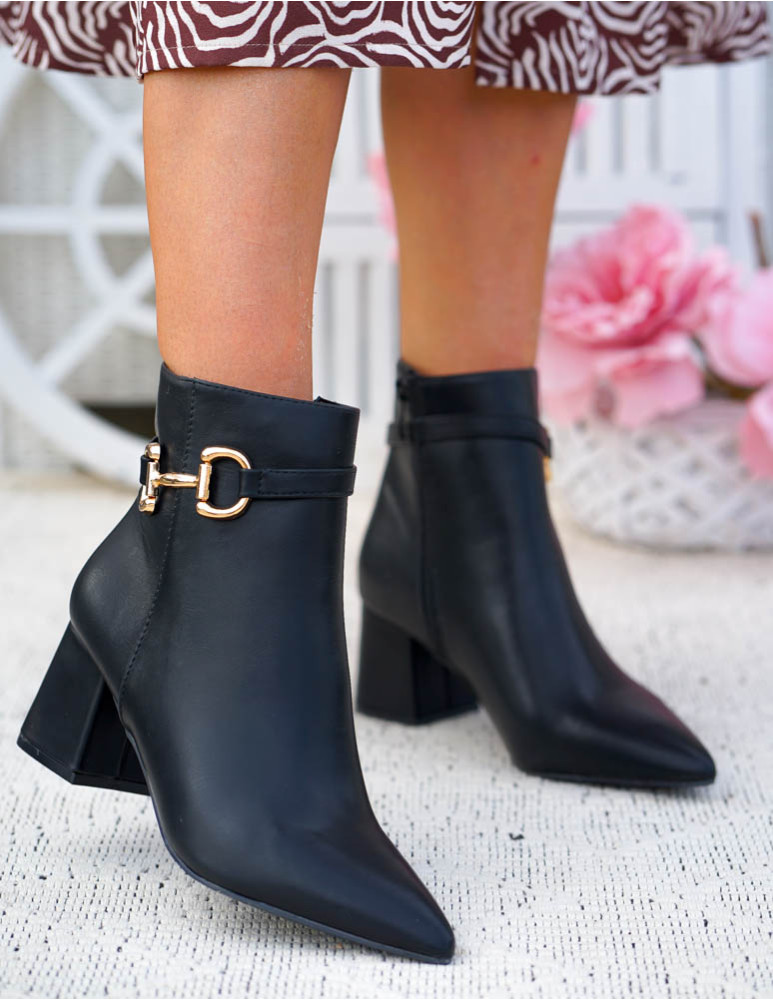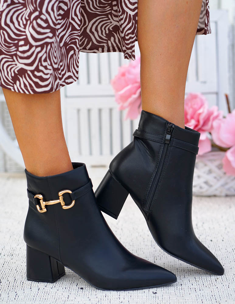 Klasyczne Czarne Botki Damskie Na Obcasie Basic