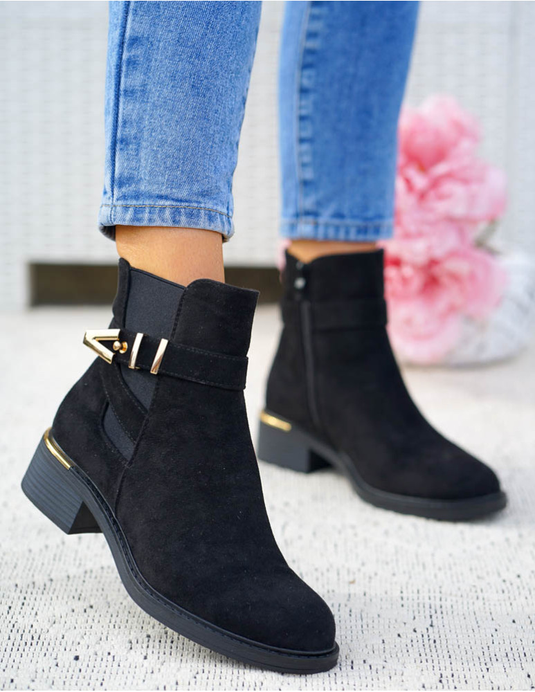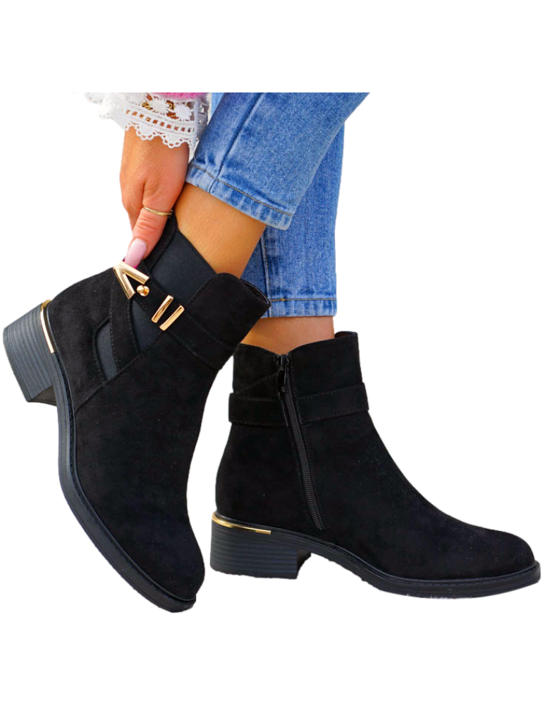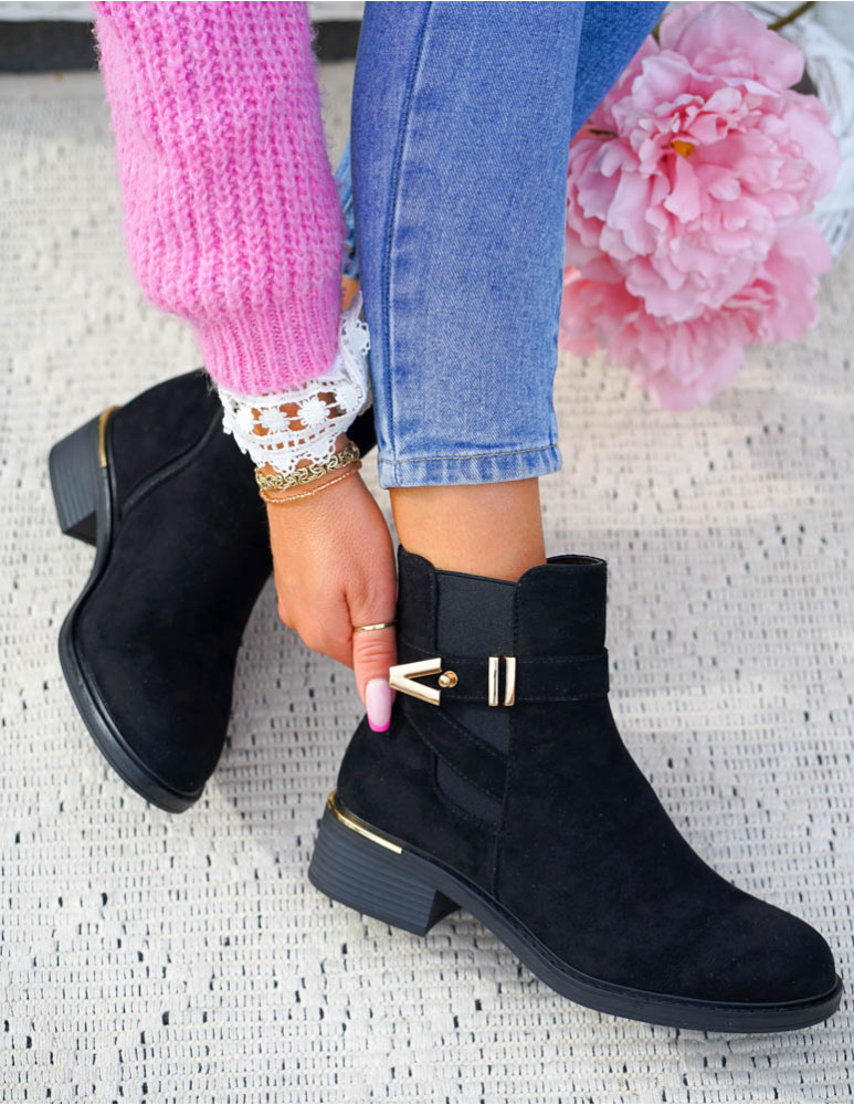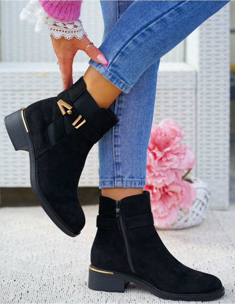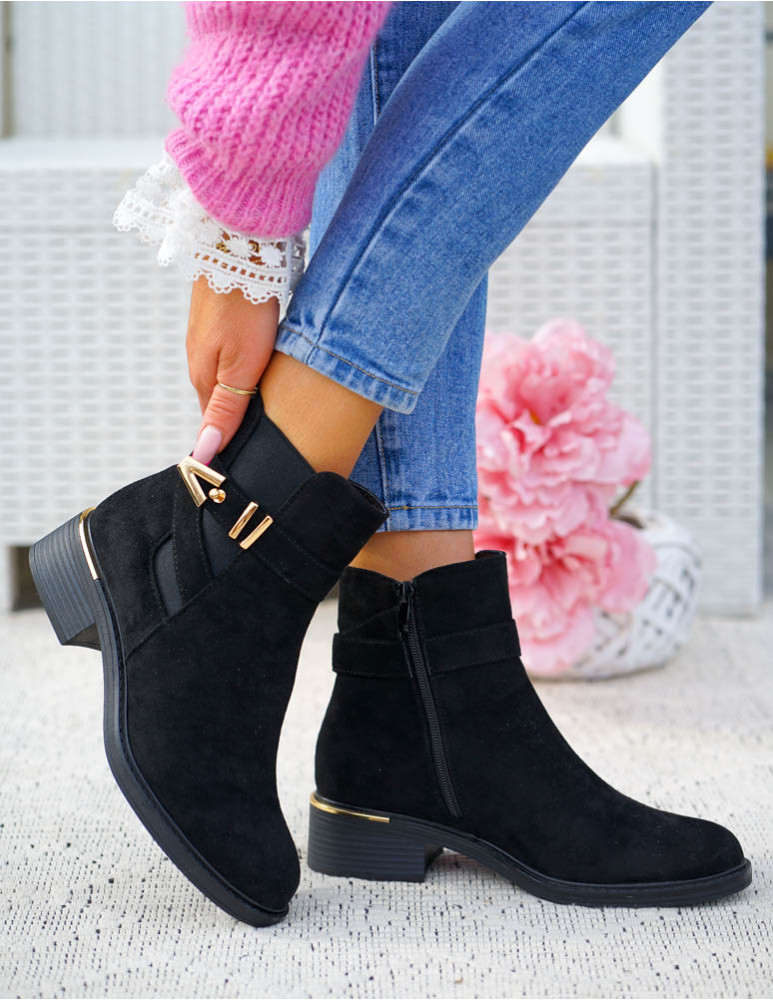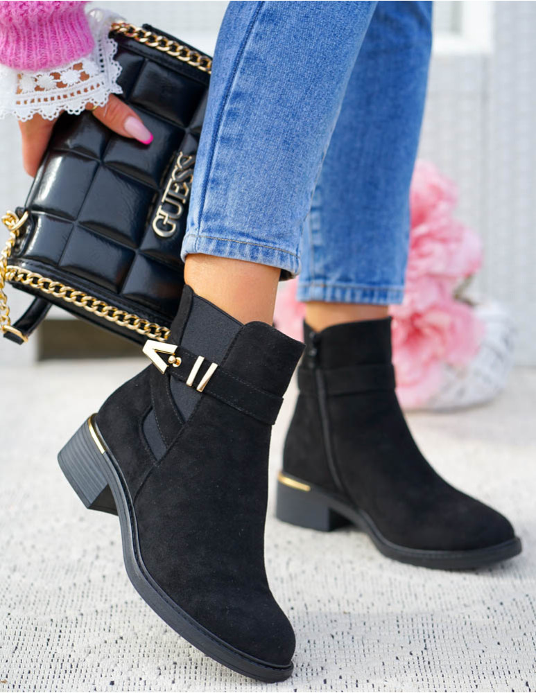 ❤ Modne i tanie buty on-line❤ Eleganckie zamszowe botki damskie na słupku❤ Czarne botki na drew..