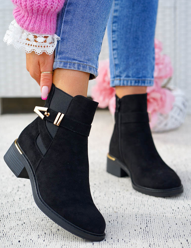 Czarne Klasyczne Zamszowe Botki Na Obcasie Fenny
