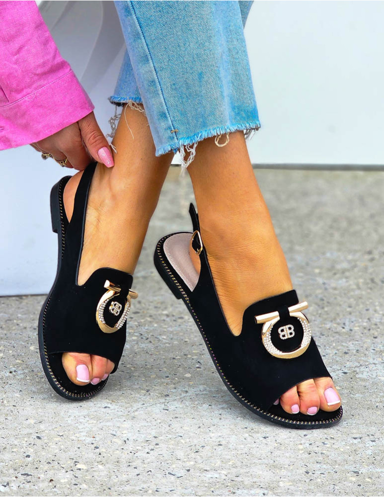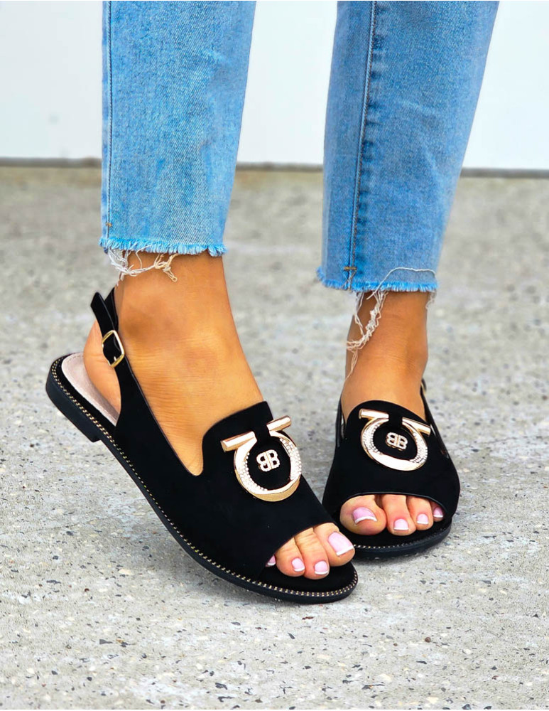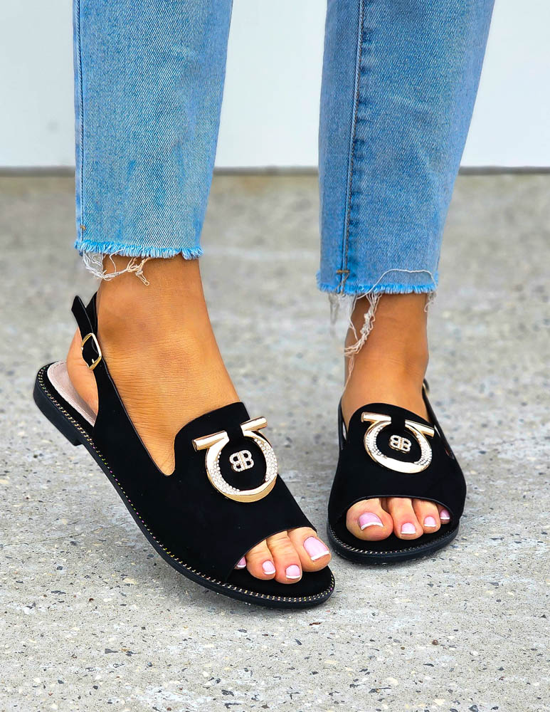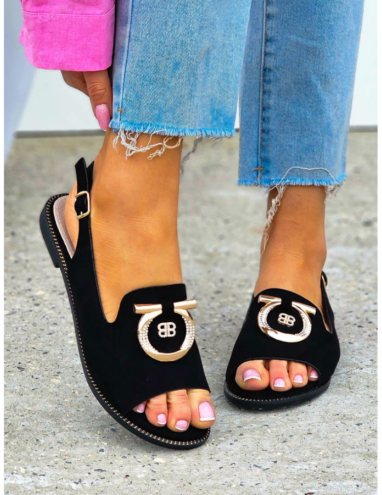 Czarne Eleganckie Sandały Z Perełkami Gold