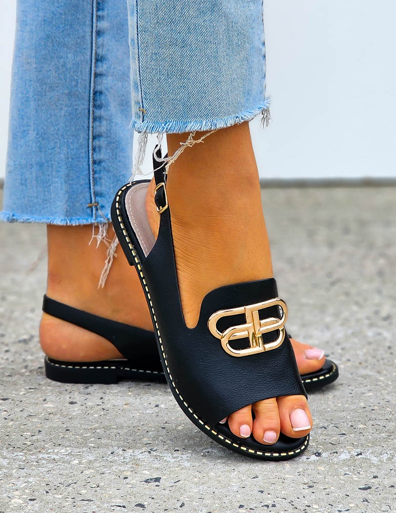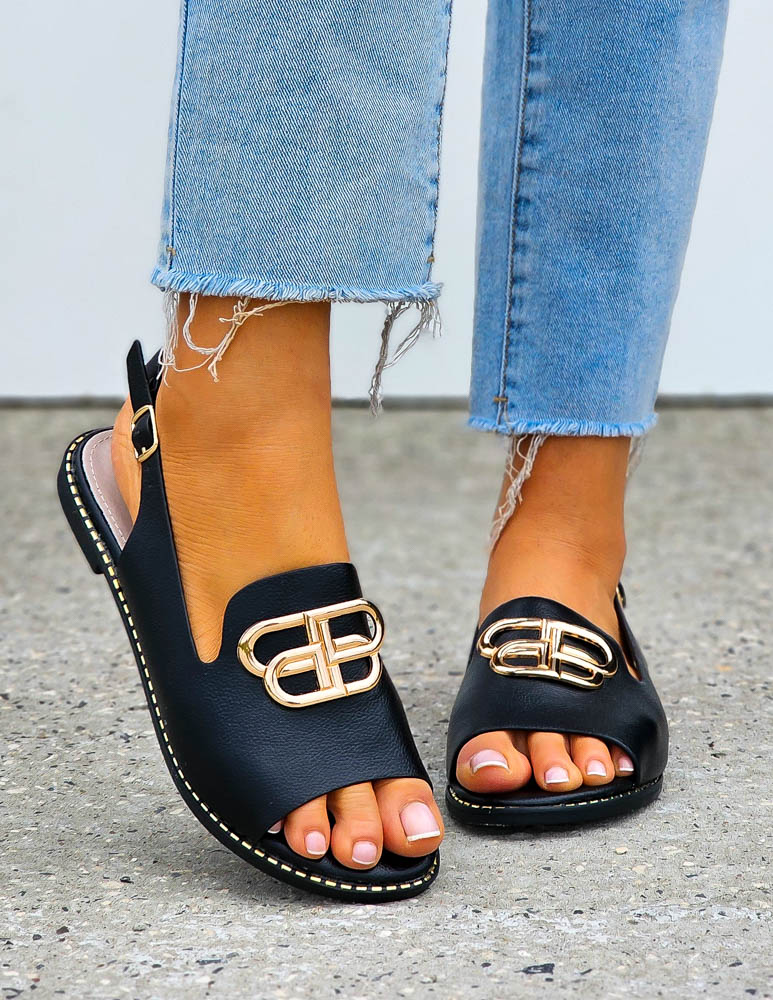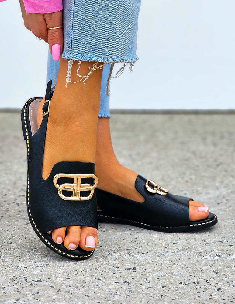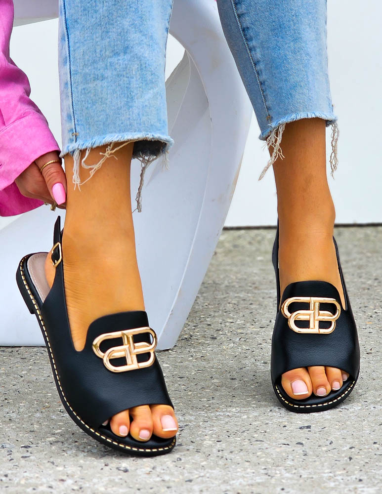 Czarne Eleganckie Sandały Z Perełkami Gold