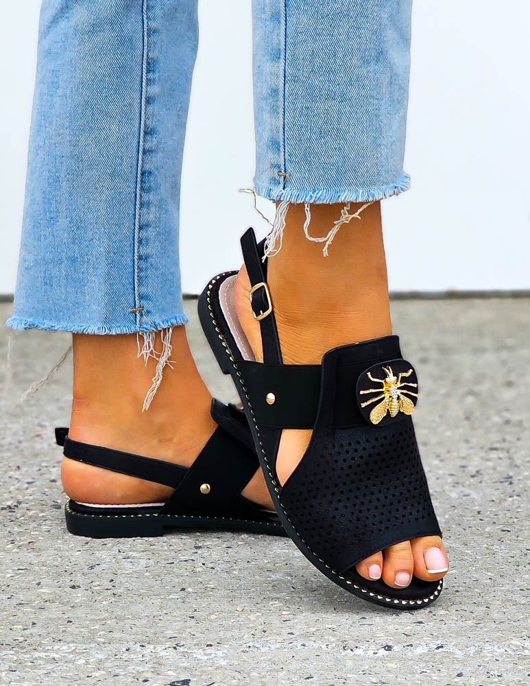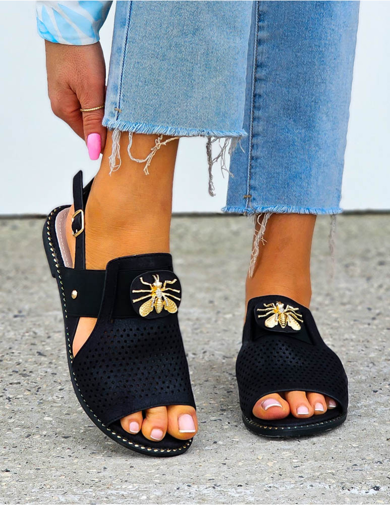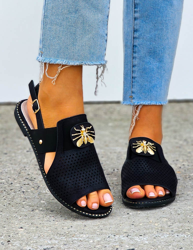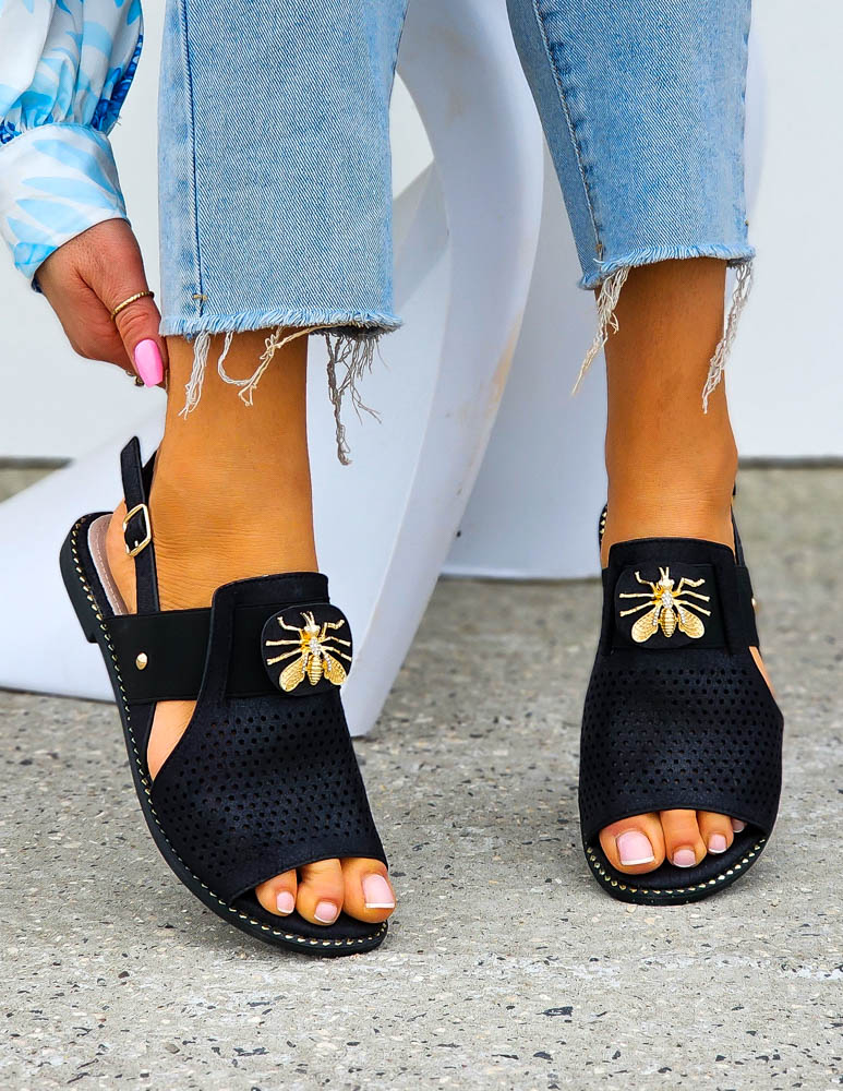 ❤Najnowsza kolekcja❤Eleganckie czarne sandałki damskie❤Sandałki ze złotymi perełkami❤WYSŁKA 24 HPrze..