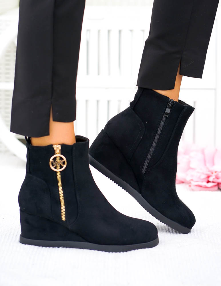 Eleganckie Zamszowe Botki Na Koturnie z Suwakiem Valentino K