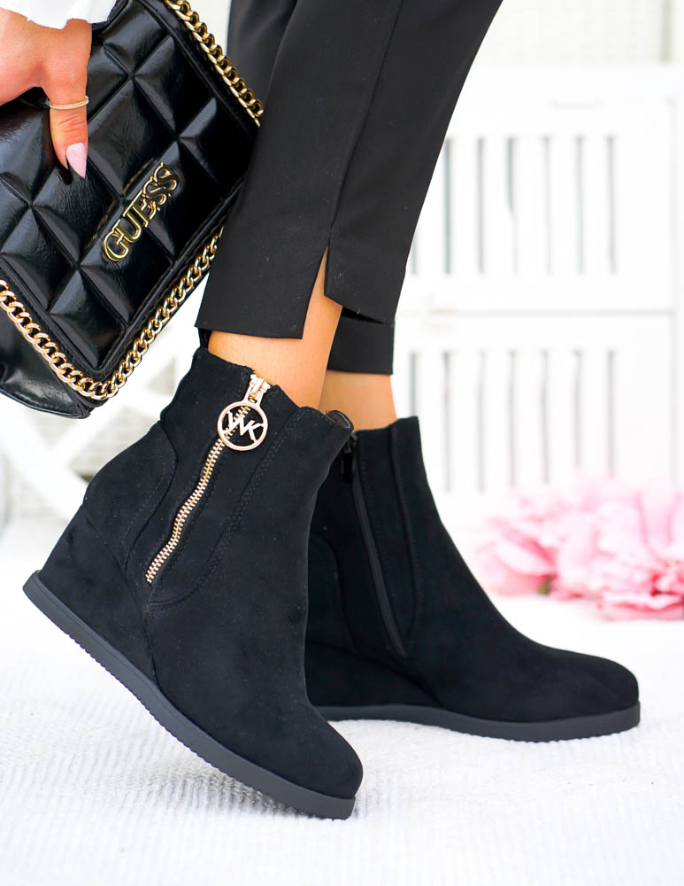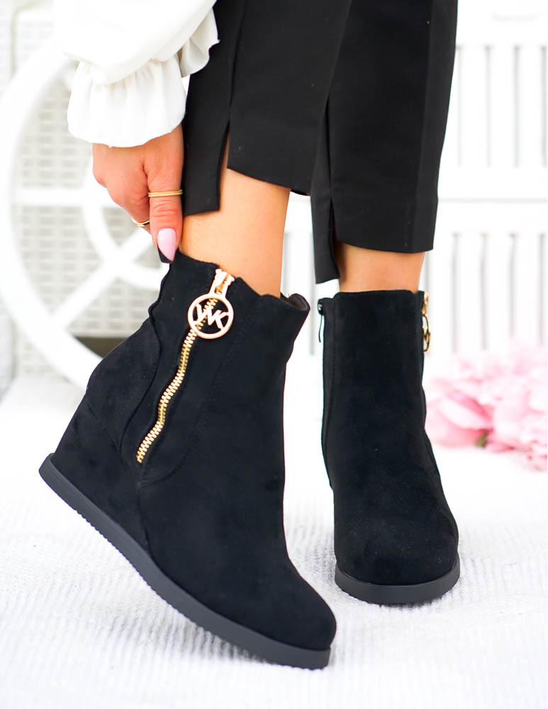 Krótkie Czarne Zamszowe Botki Na Koturnie Save