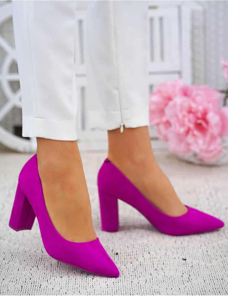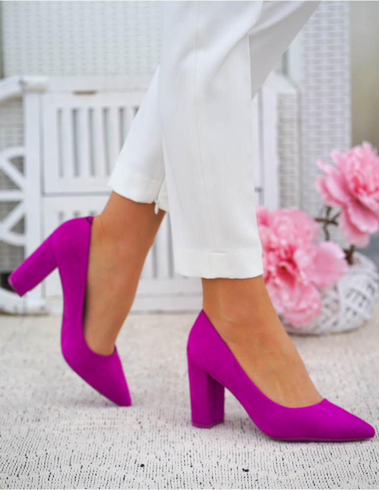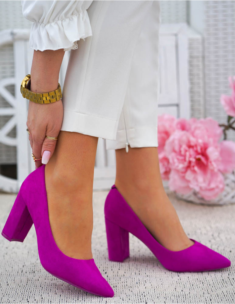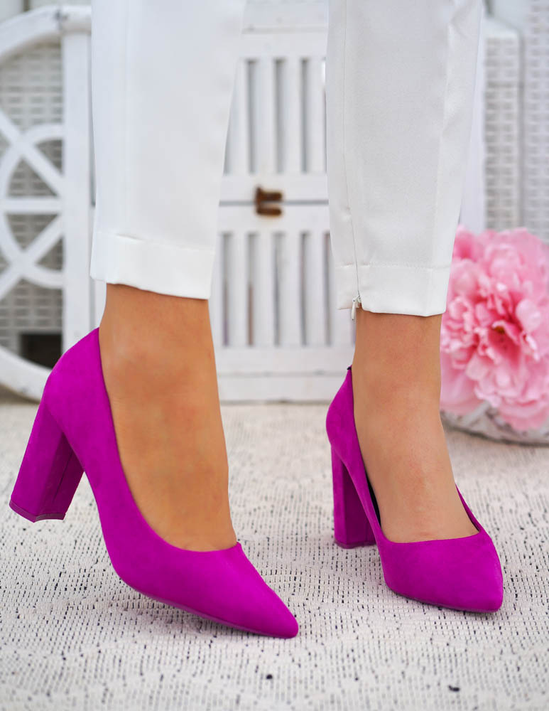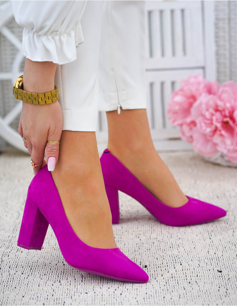 - Kod produktu: Fuksjowe Zamszowe Czółenka Na Słupku Pariss
