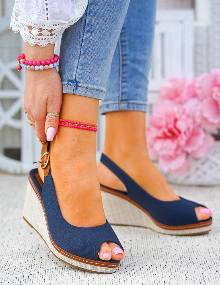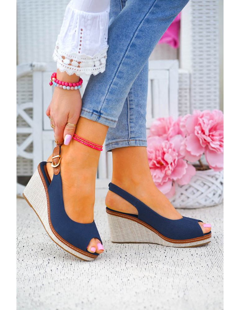 Granatowe Sandały Na Koturnie Płócienne Tomi Hally