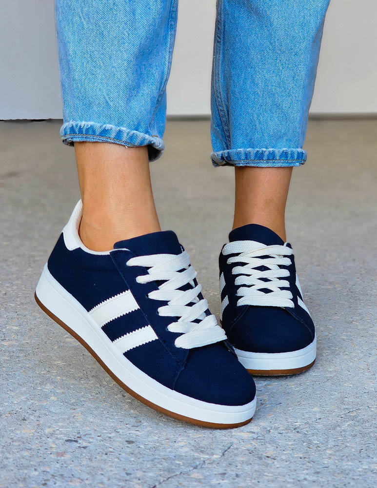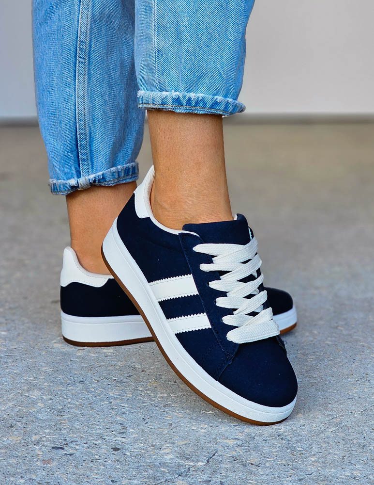 • Kod produktu: Granatowo-Białe Zamszowe Buty Sportowe Campers