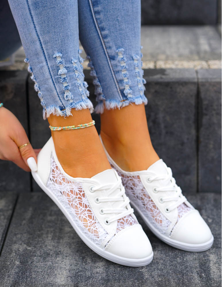 Białe Koronkowe Tenisówki Trampki Na Lato Salma