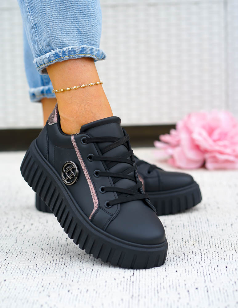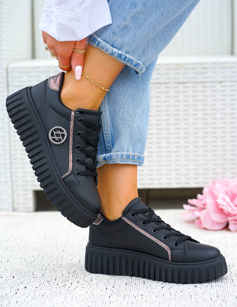 Czarne Skórzane Buty Sportowe Na Platformie LV Miss