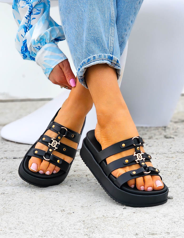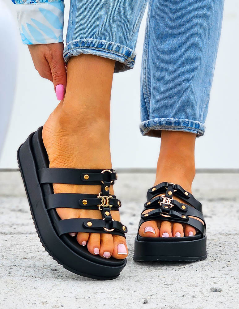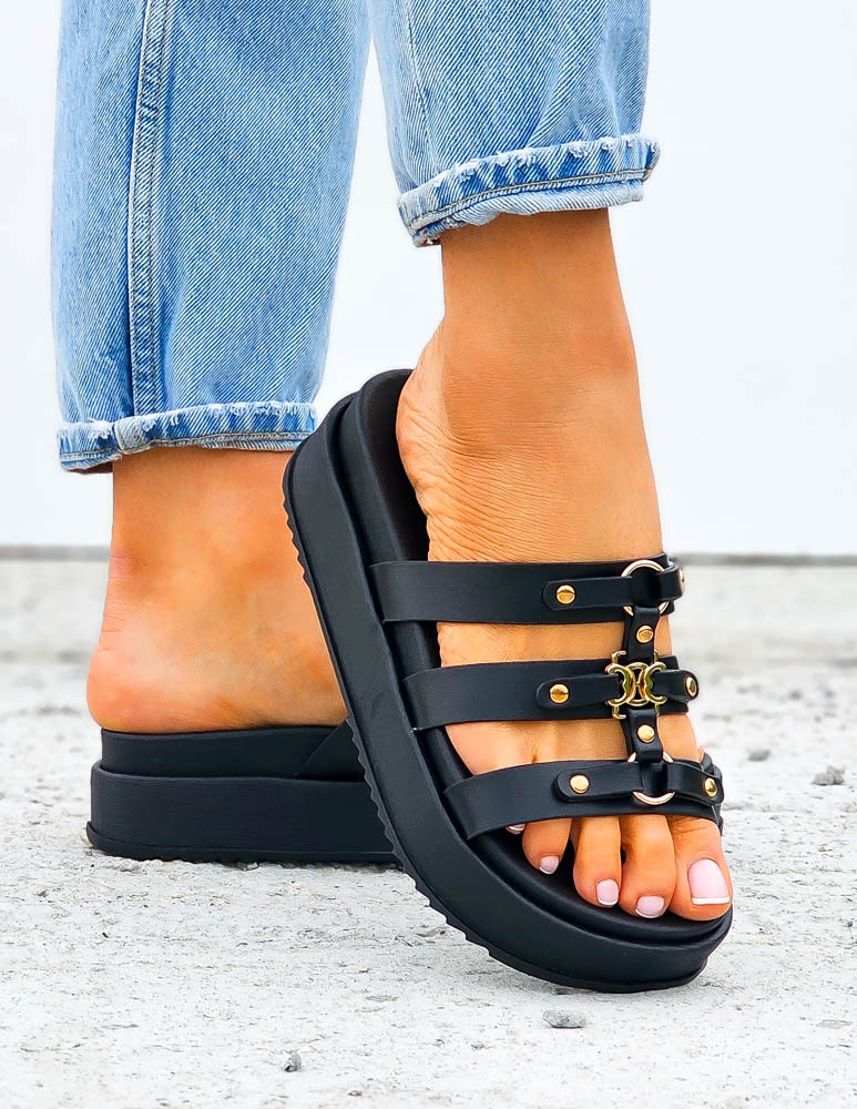 - ❤Klapki na grubej podeszwie w czarnym kolorze