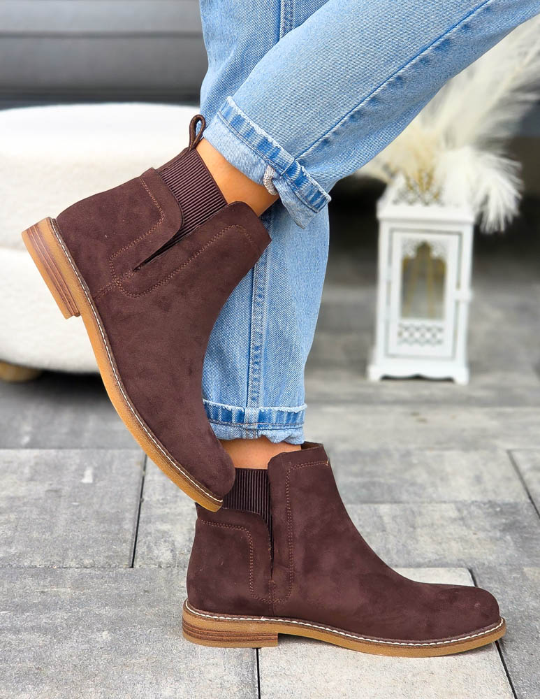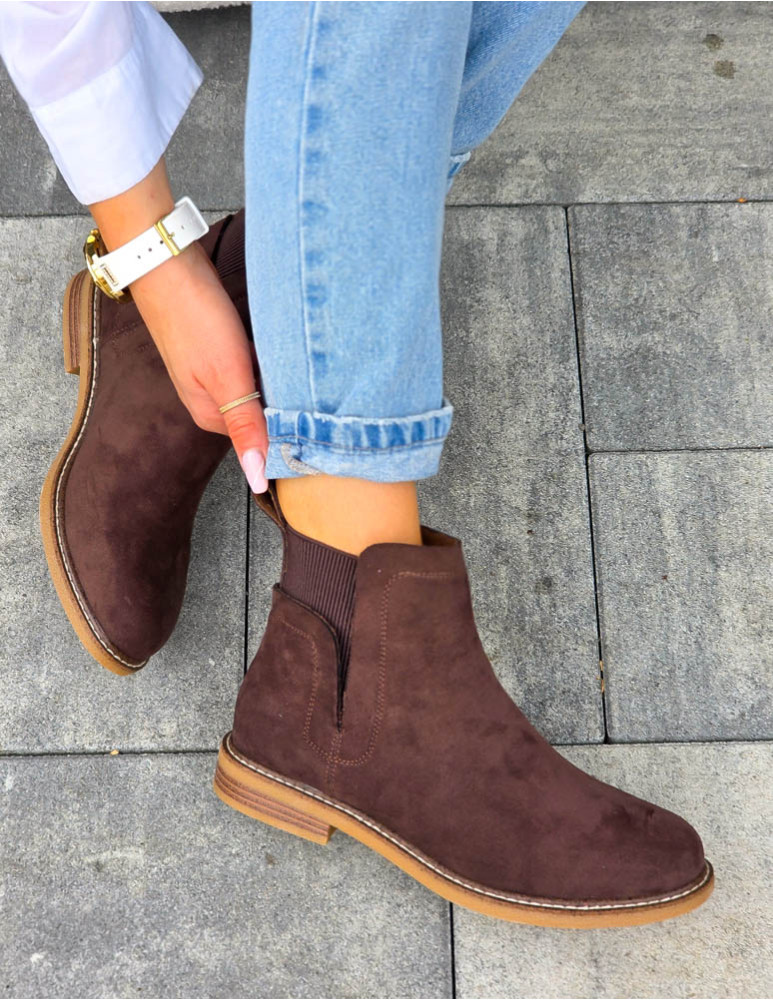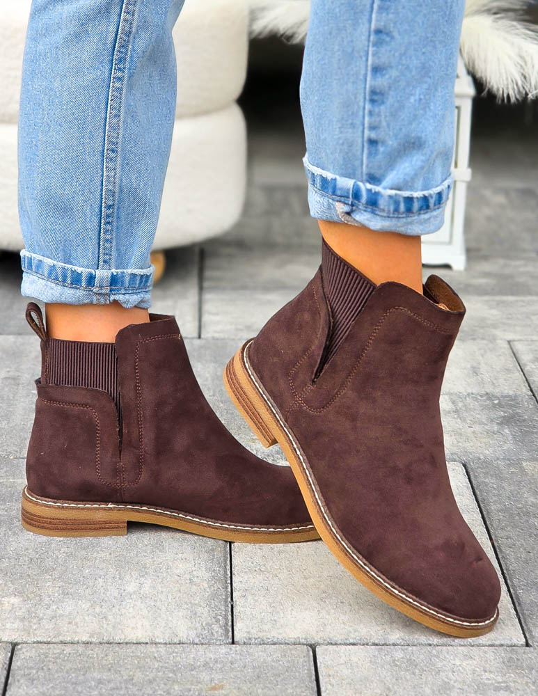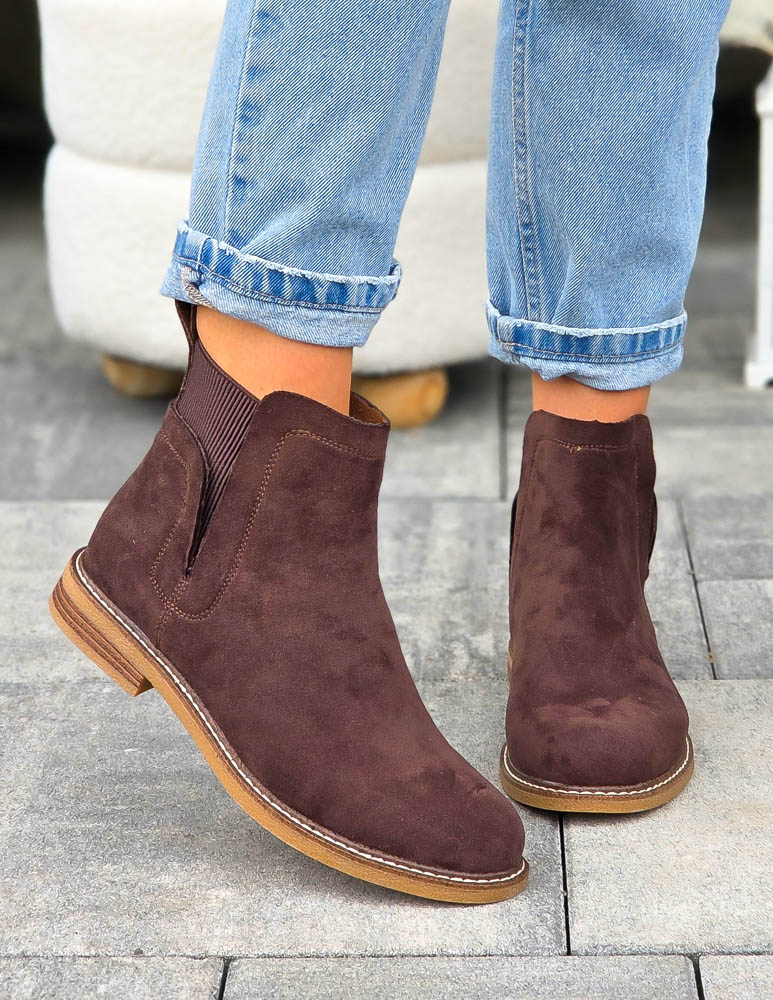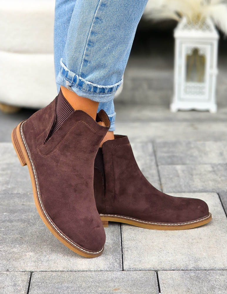 - Kod produktu: Czekoladowe Botki Na Płaskim Spodzie z Gumą
