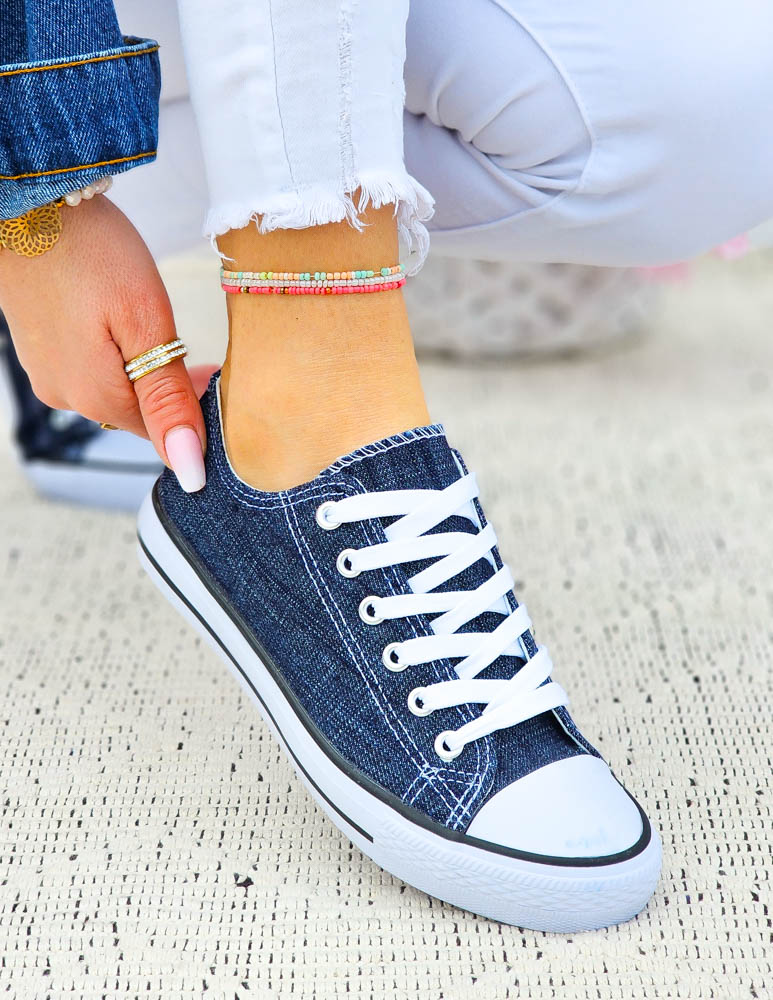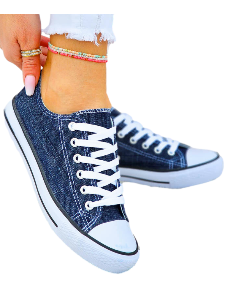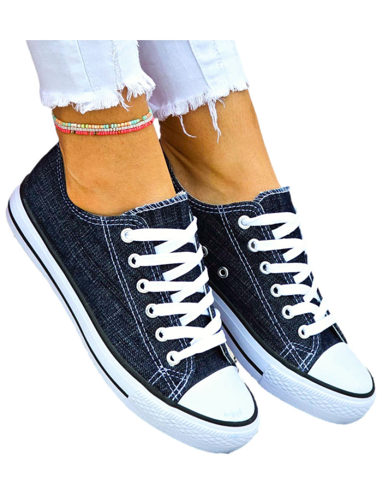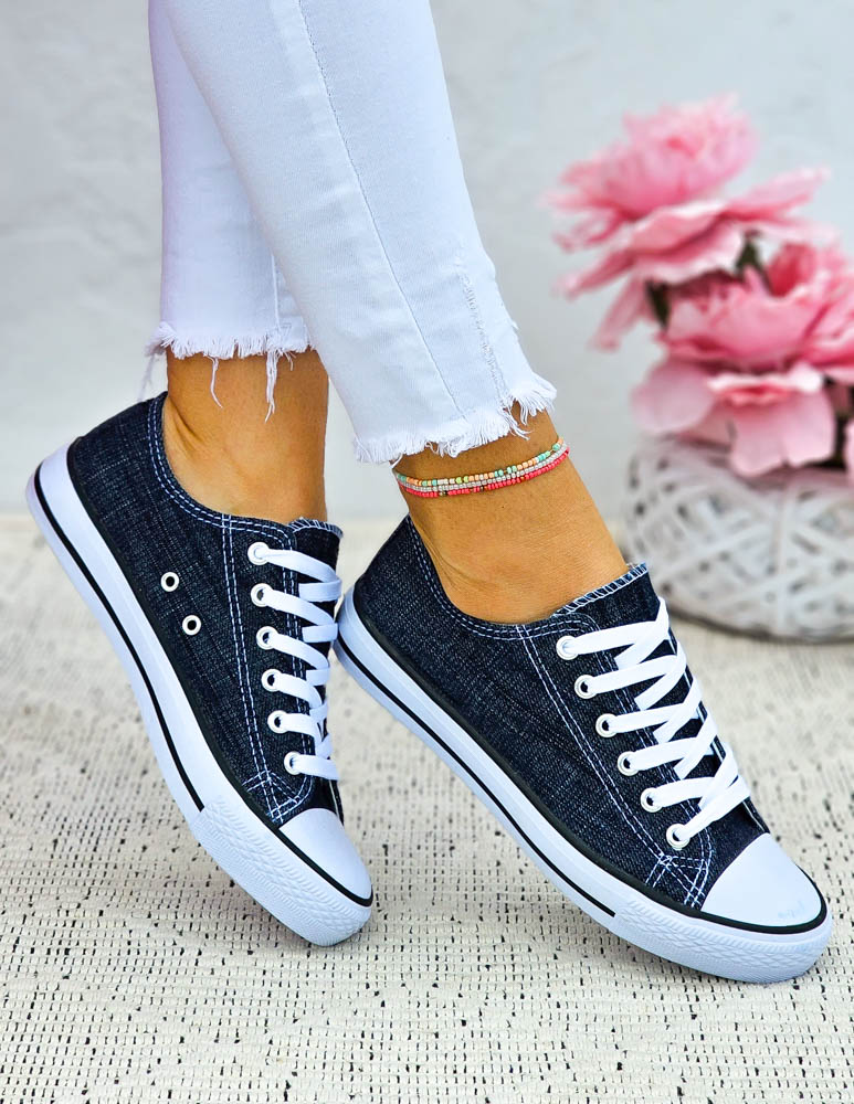 Klasyczne, jeansowe trampki damskie na gumowej podeszwie