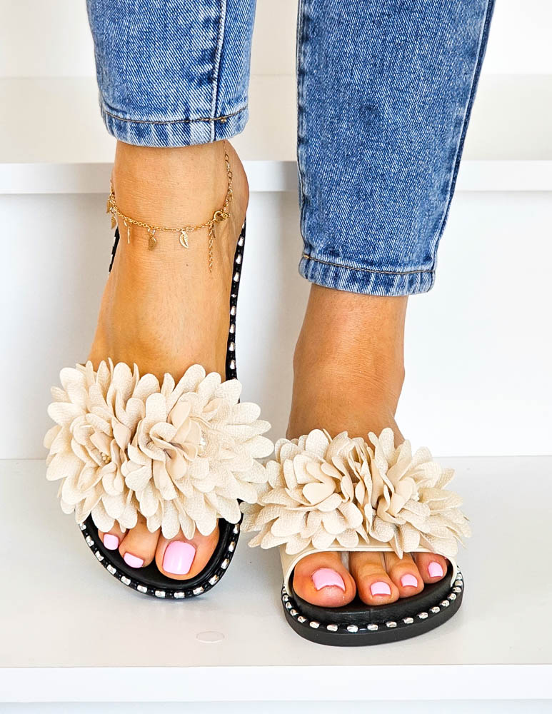 • Kod produktu: Klapki Damskie z Kwiatem Havana Beżowe