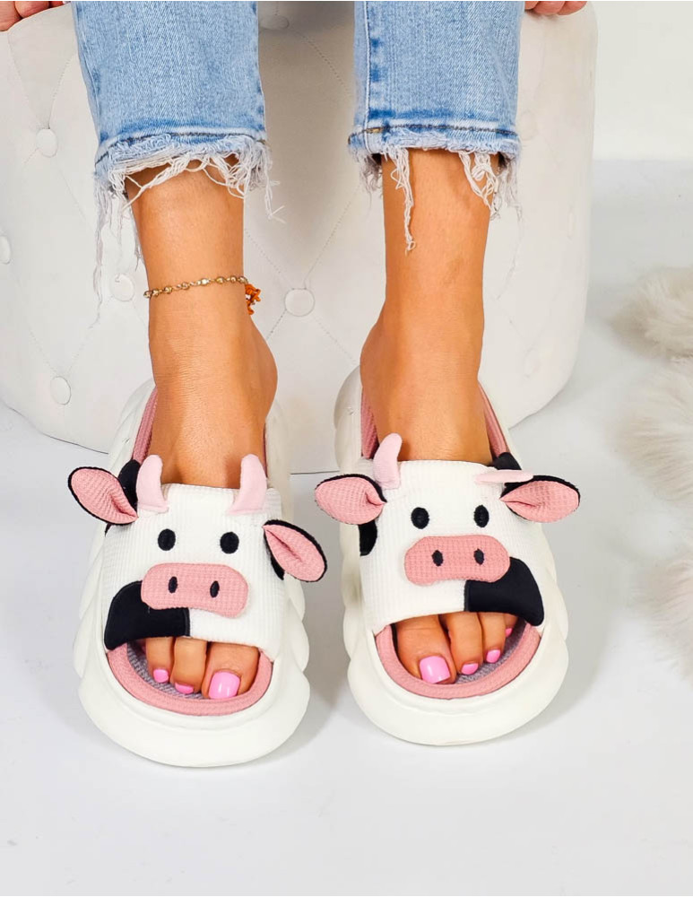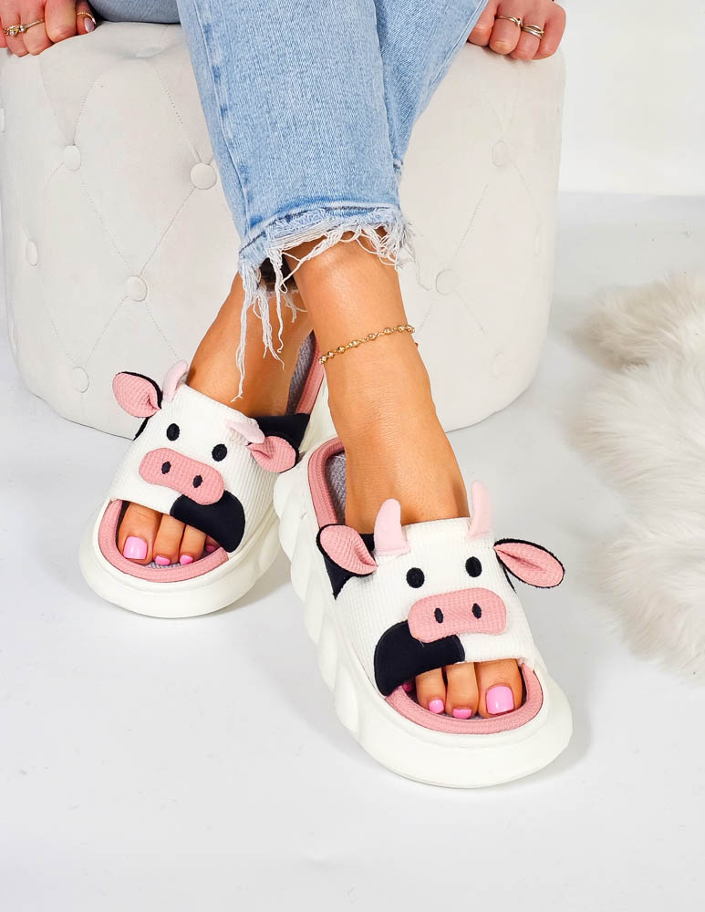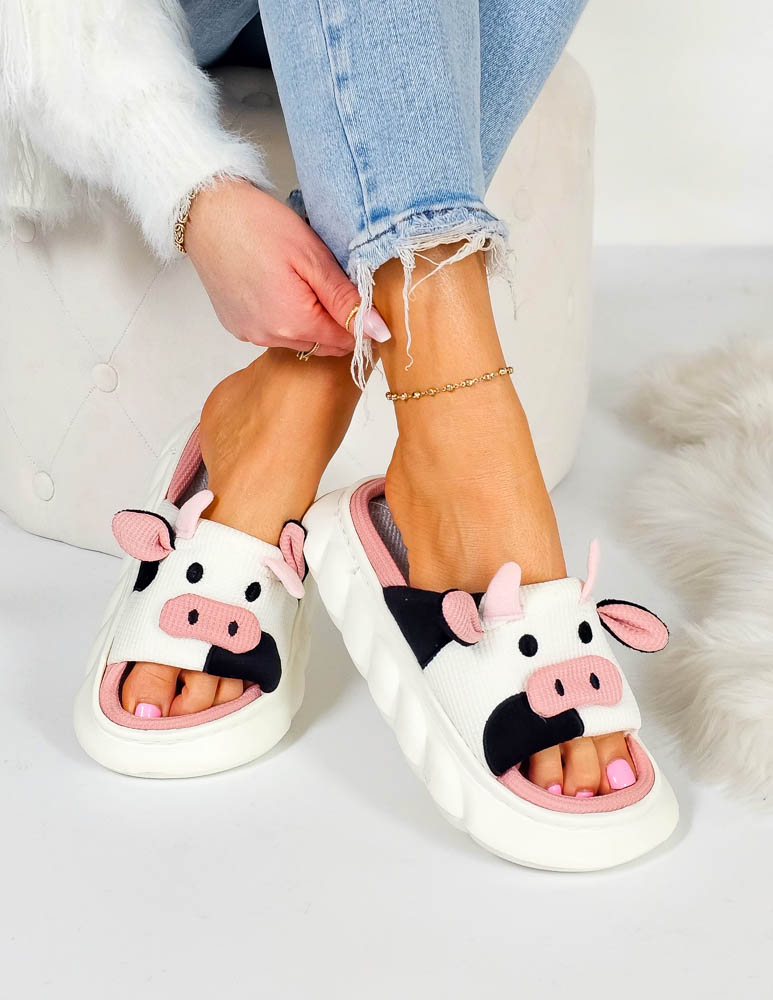 Klapki Kapcie Po Domu Krowy Biało-Różowe