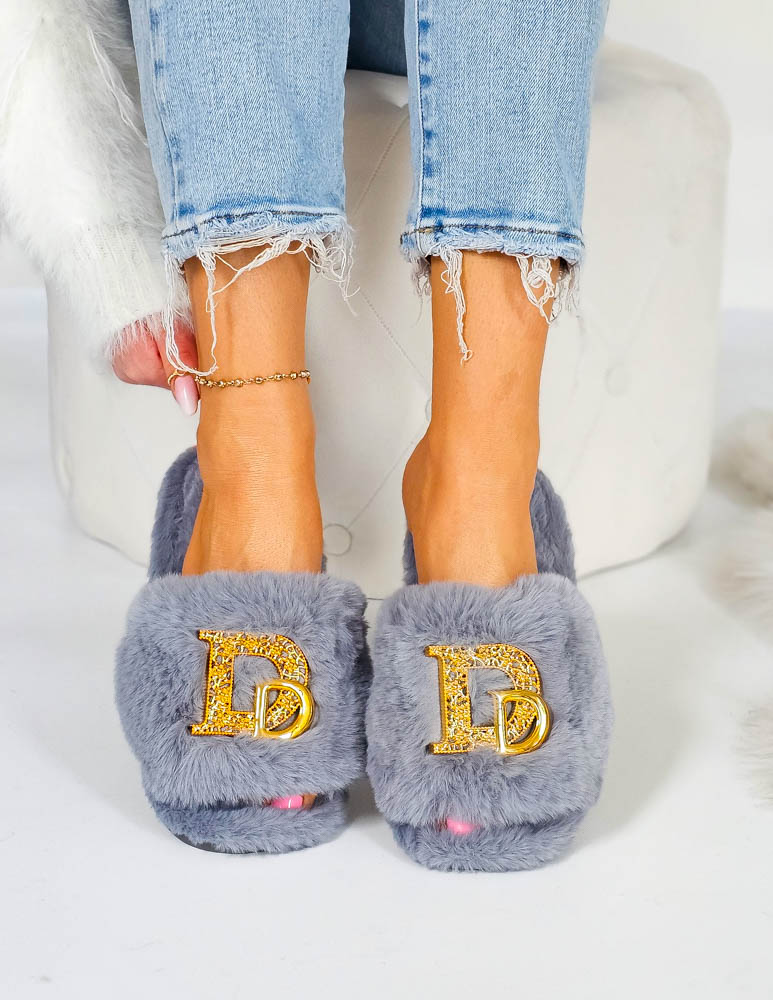 Klapki Kapcie Po Domu z Futerkiem Dolce Szare
