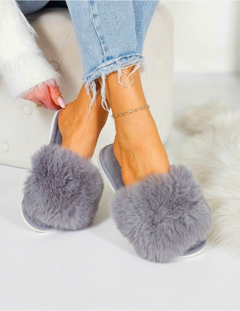 Klapki Kapcie Po Domu z Futerkiem Nice Szare