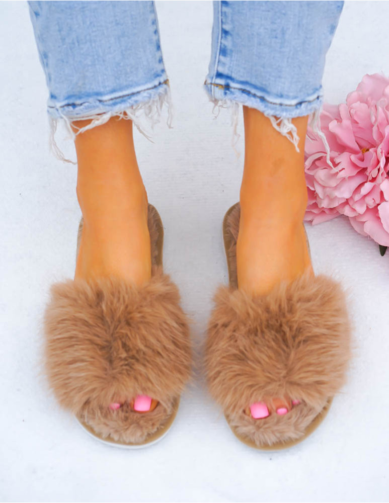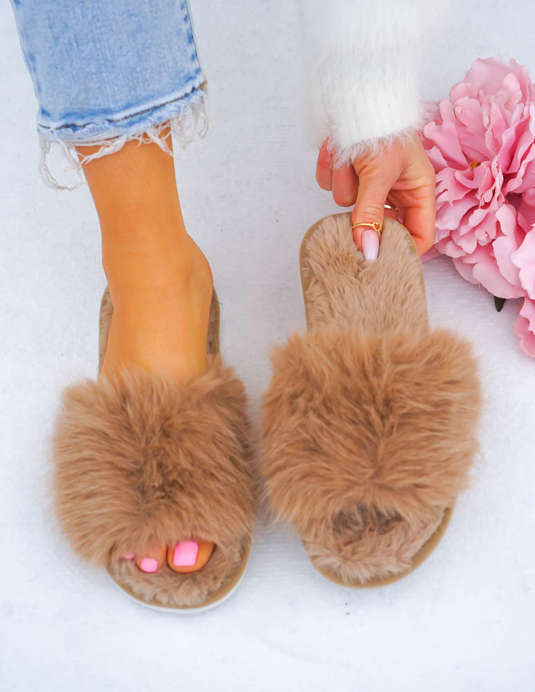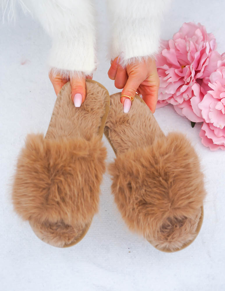 Klapki Kapcie Po Domu z Futerkiem Pretty Brązowe