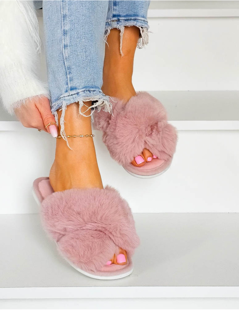 Klapki Kapcie Po Domu z Futerkiem Yess Pink