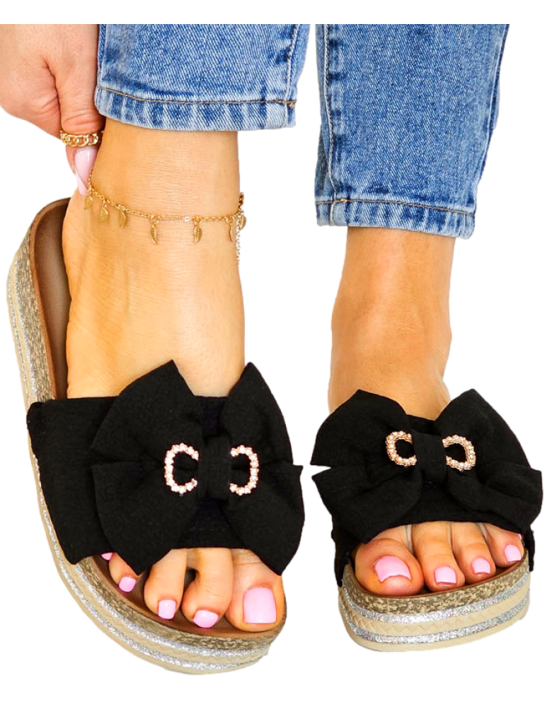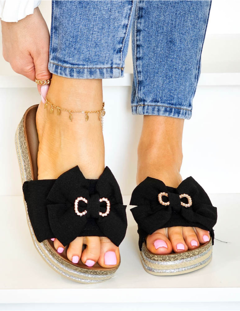 Klapki Na Platformie z Kokardą Effectiv Czarne