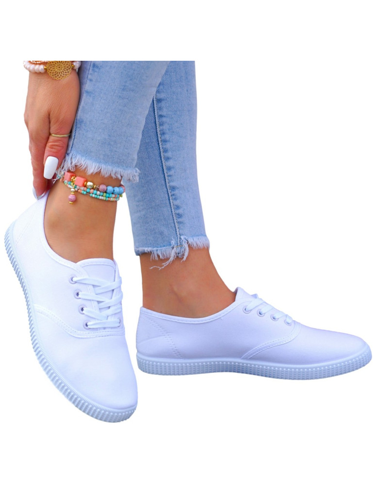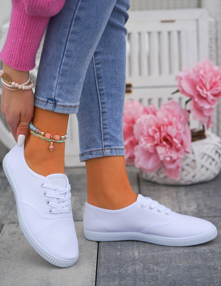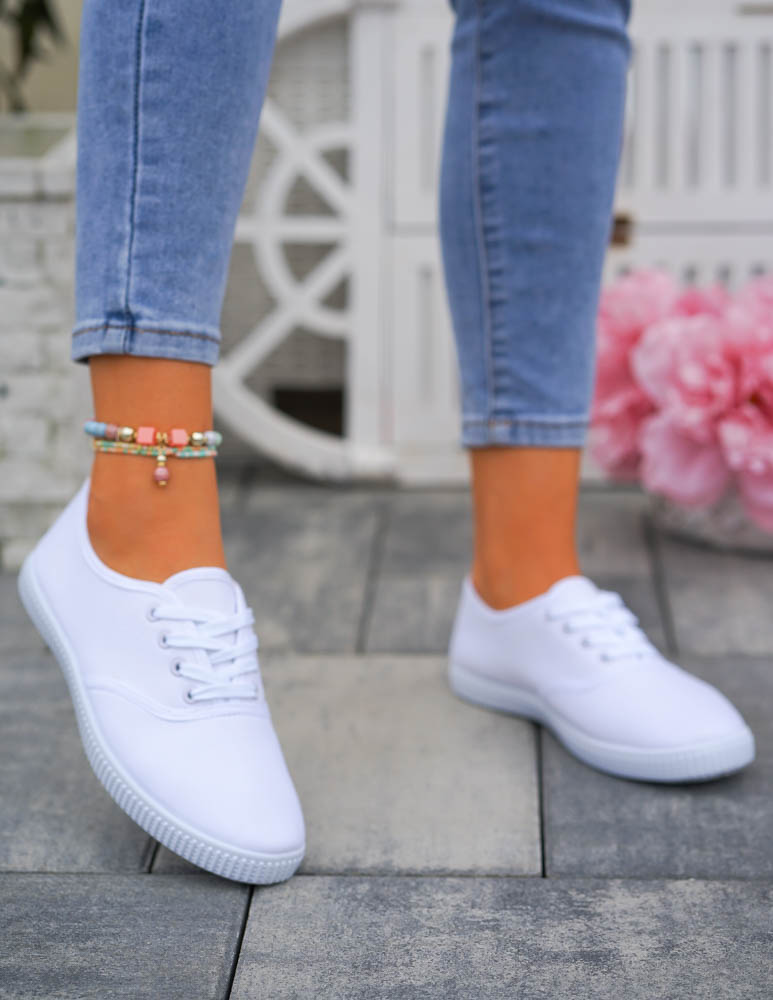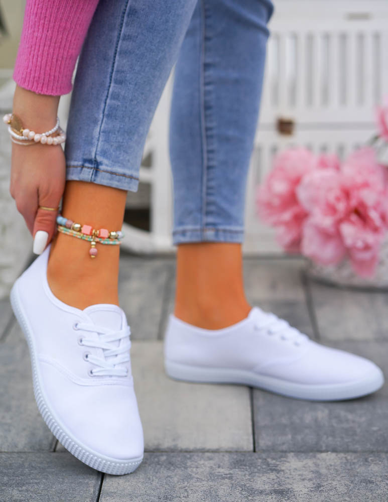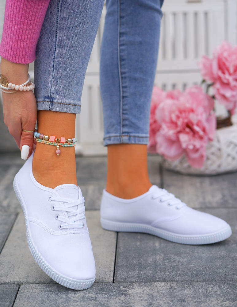 - Śliczne, damskie sznurowane buty sportowe na płaskiej podeszwie w kolorze białym. Lekkie i wygodne. Klasyczny fason wpisze się w każdy styl.