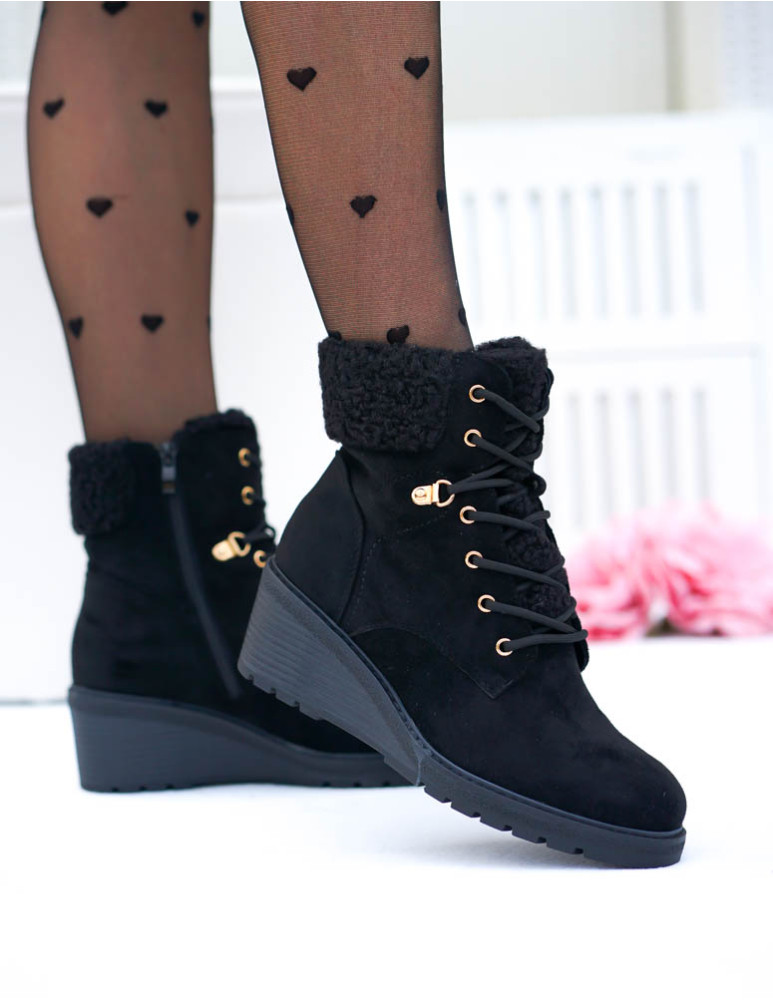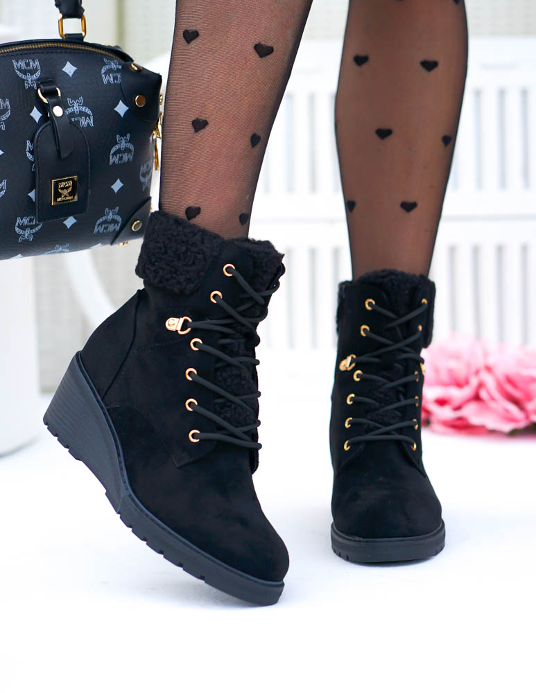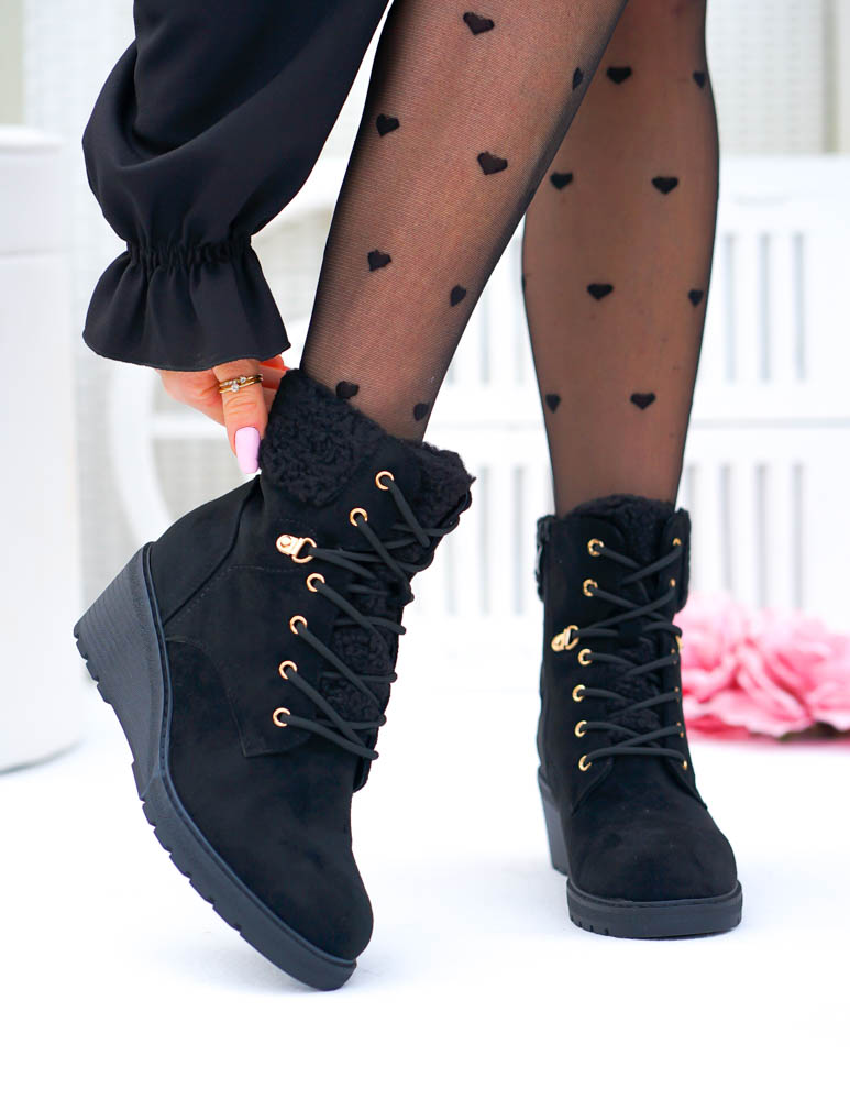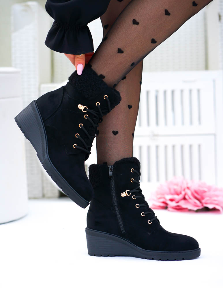 Krótkie Czarne Zamszowe Botki Na Koturnie Save