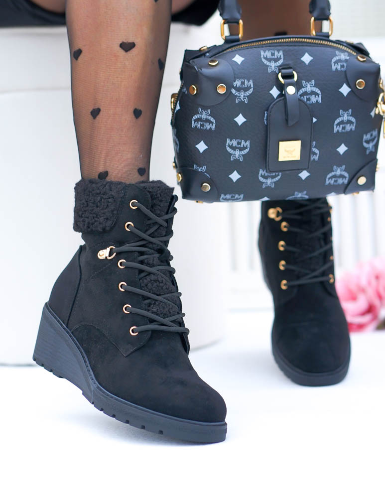 • Kod produktu: Klasyczne Botki Damskie Na Koturnie z Kożuszkiem Ocieplane