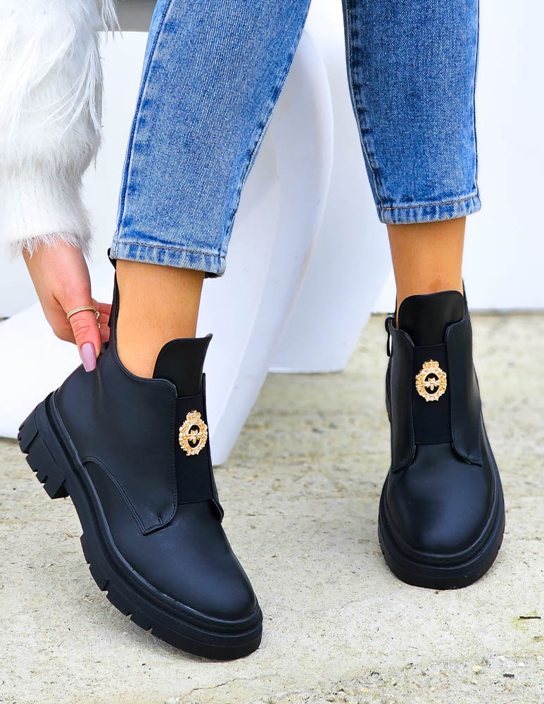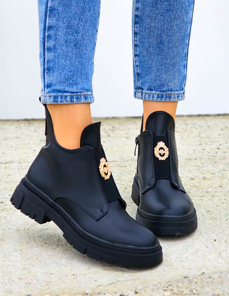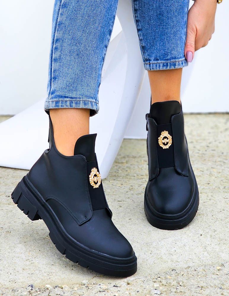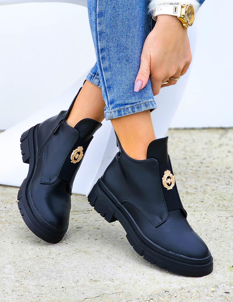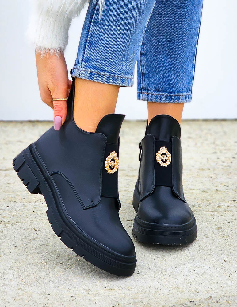 Krótkie Czarne Botki Z Gumami Na Platformie Mauris