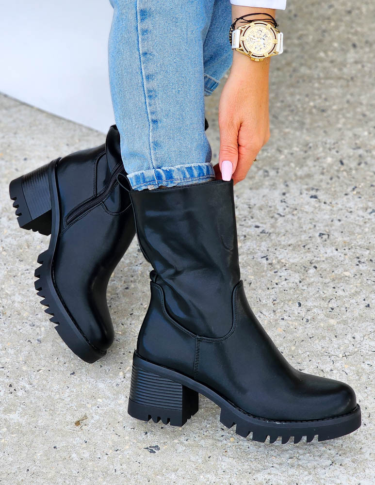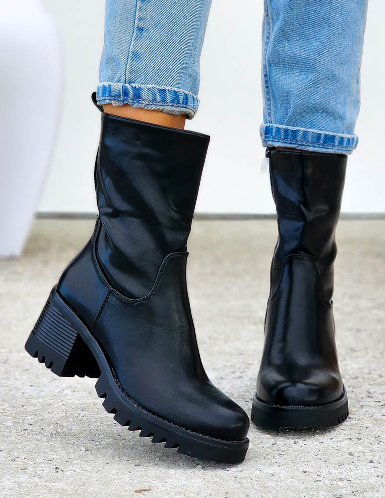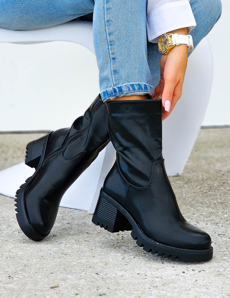 Klasyczne Czarne Botki Damskie Na Obcasie Basic