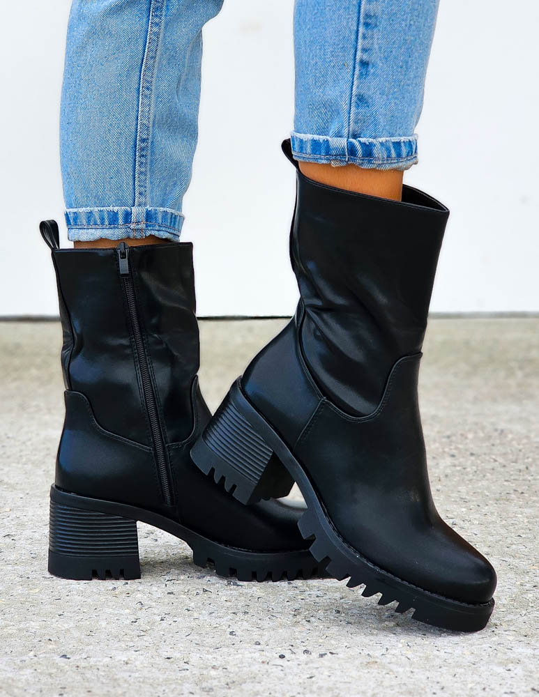 ❤NAJNOWSZA KOLEKCJA !!!❤EFEKTOWNE CZARNE BOTKI NA GRUBEJ PODESZWIE❤BUTY PPOSIADAJĄ GUMOWE WSTAWKI PO..