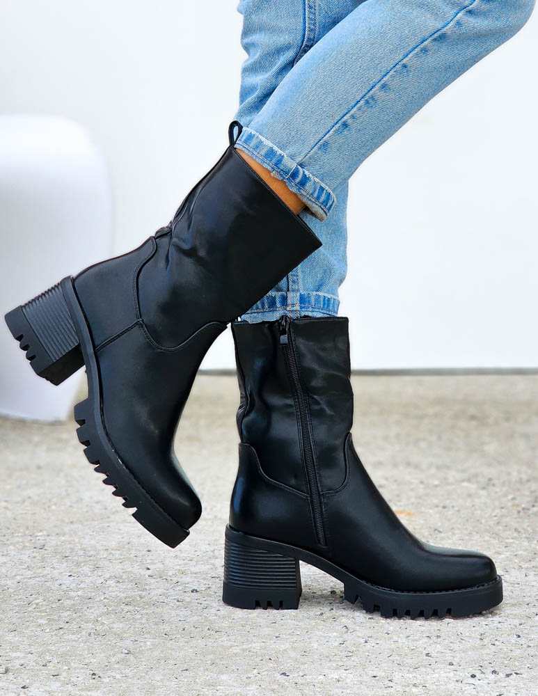 ❤ Modne i tanie buty on-line❤Klasyczne, czarne botki na niskim obcasie❤ Botki a`lla kowbojki ze..