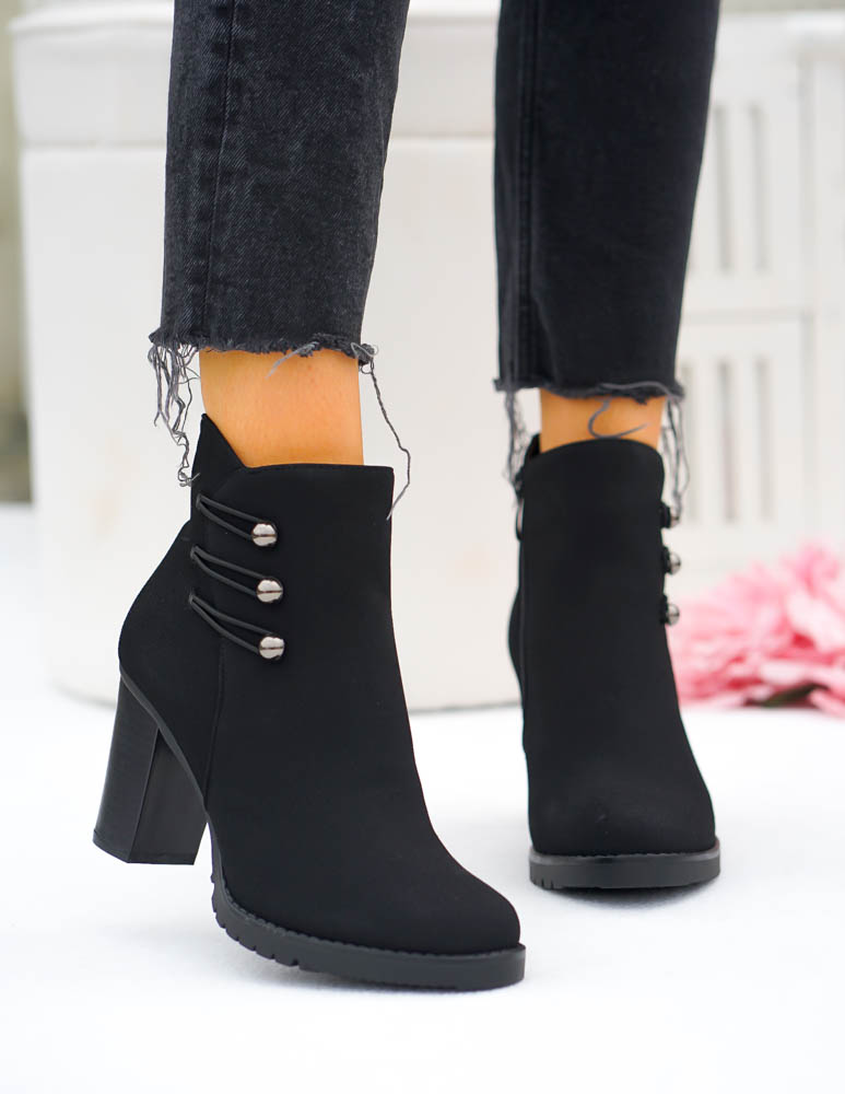Czarne Klasyczne Zamszowe Botki Na Obcasie Fenny