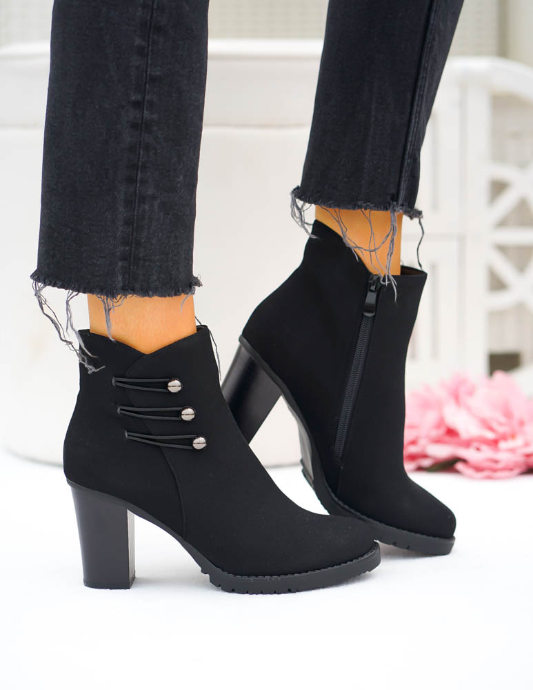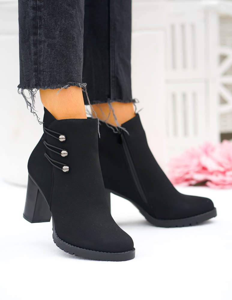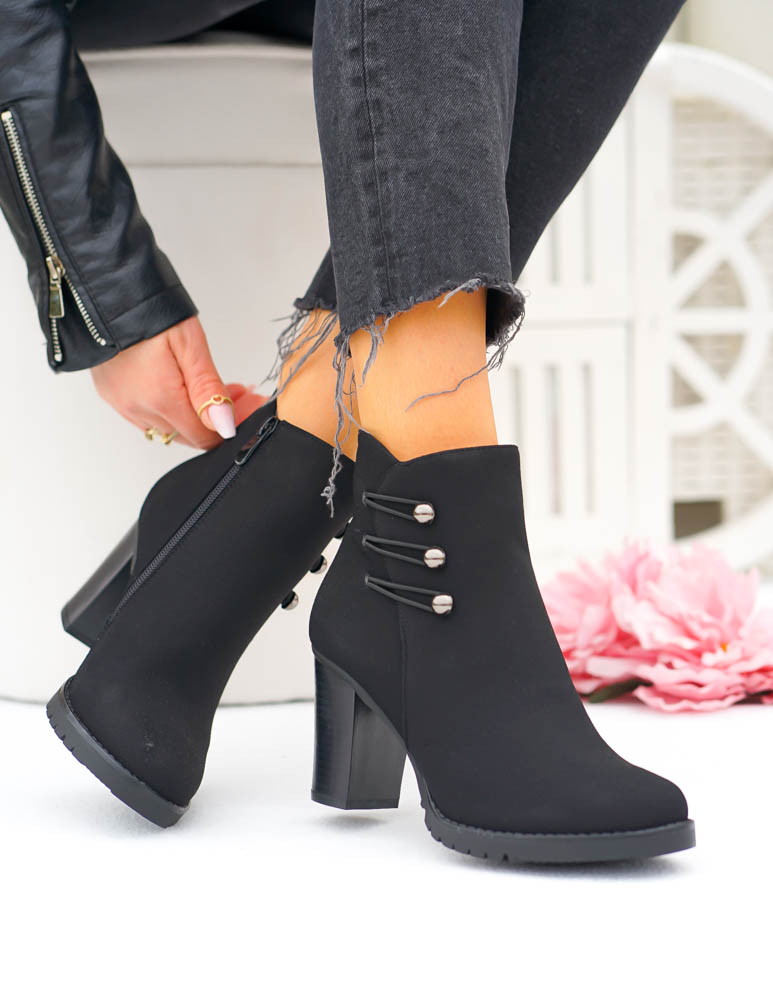 Eleganckie Czarne Zamszowe Botki Na Obcasie Arte