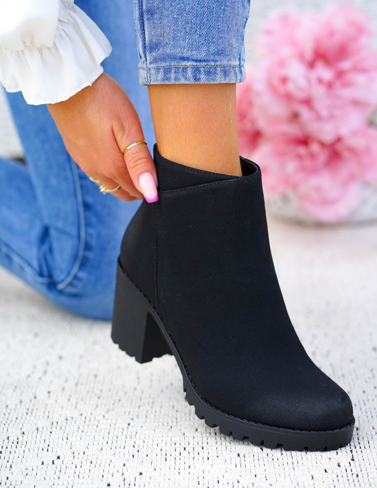 Czarne Klasyczne Zamszowe Botki Na Obcasie Fenny