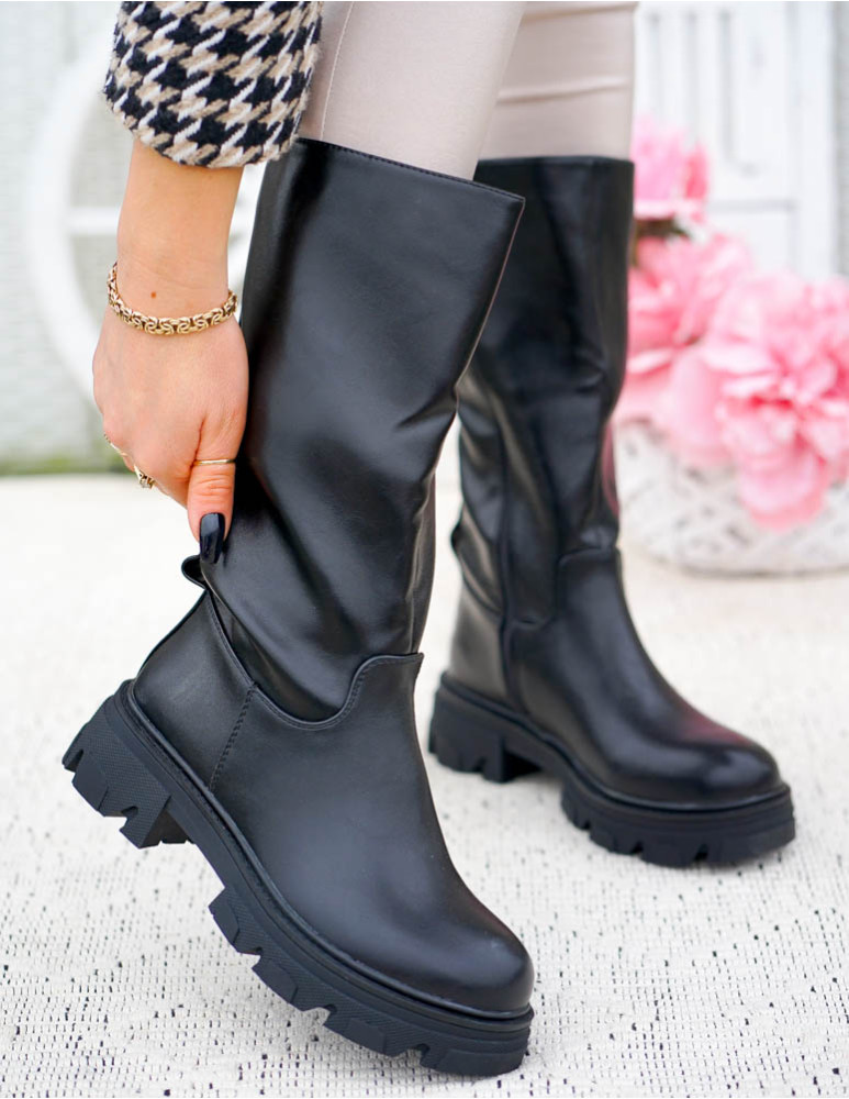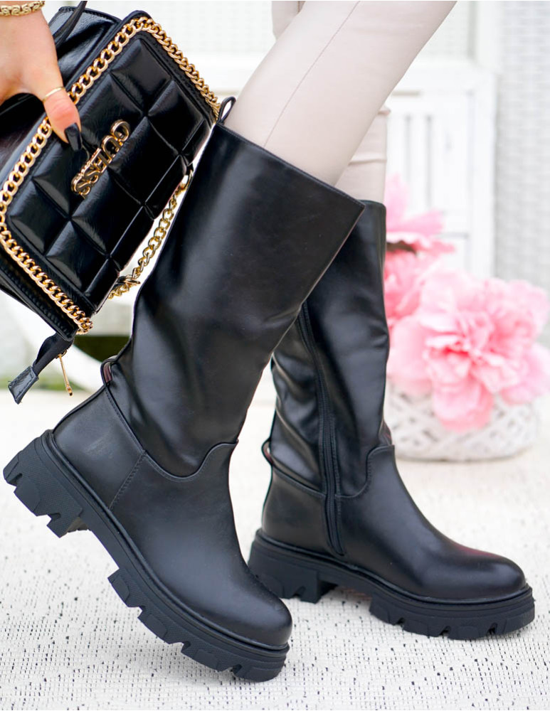 - Kod produktu: Klasyczne Czarne Kozaki Ze Skóry Do Kolana Olivia
