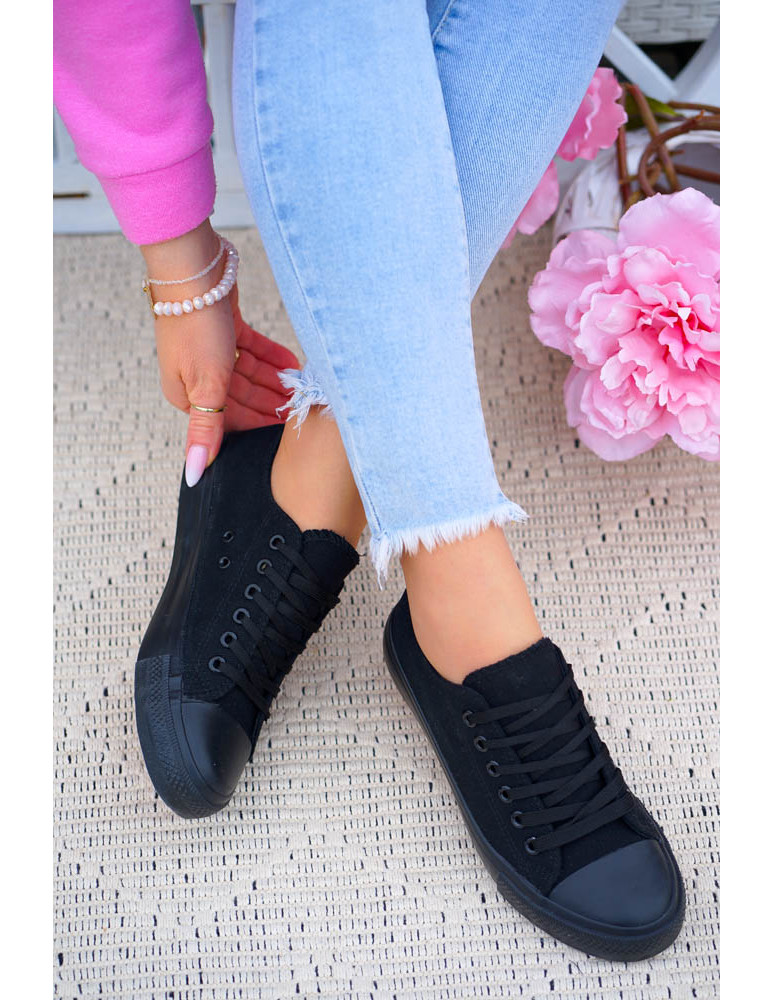 ❤Wysyłka 24 h❤Czarne, klasyczne trampki na grubej podeszwie❤Czarne buty sportoweŚliczne, damskie szn..