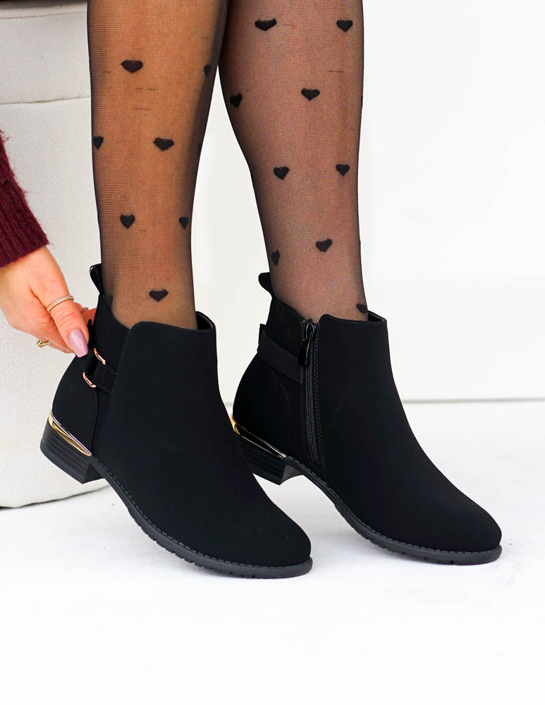 Czarne Klasyczne Zamszowe Botki Na Obcasie Fenny