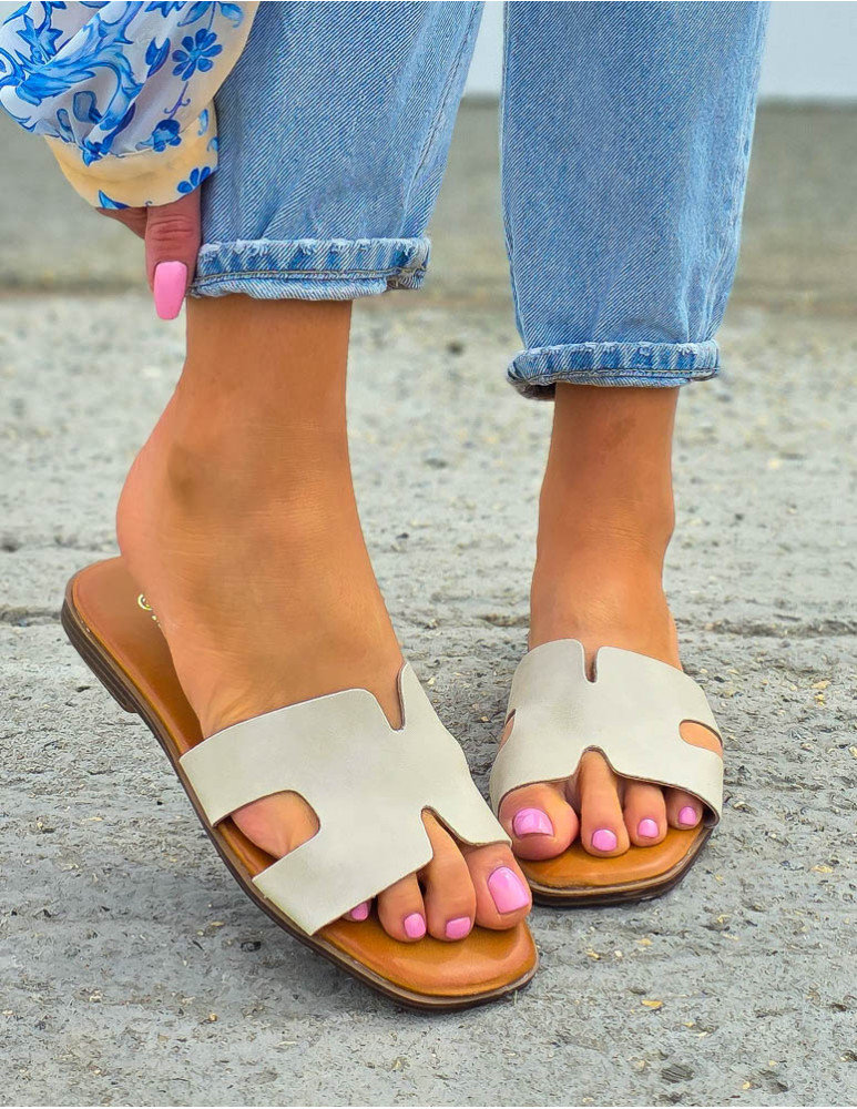 Klasyczne Klapki Ze Skóry Herness Beżowe