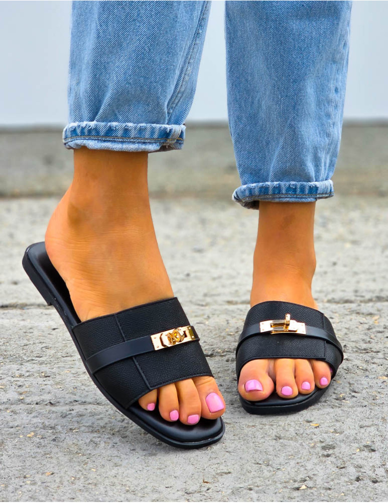 Klasyczne Klapki Ze Skóry z Klamerką Czarne