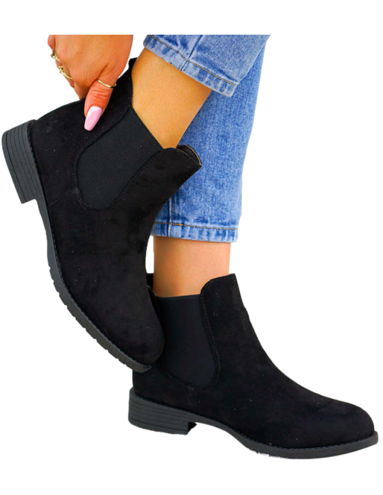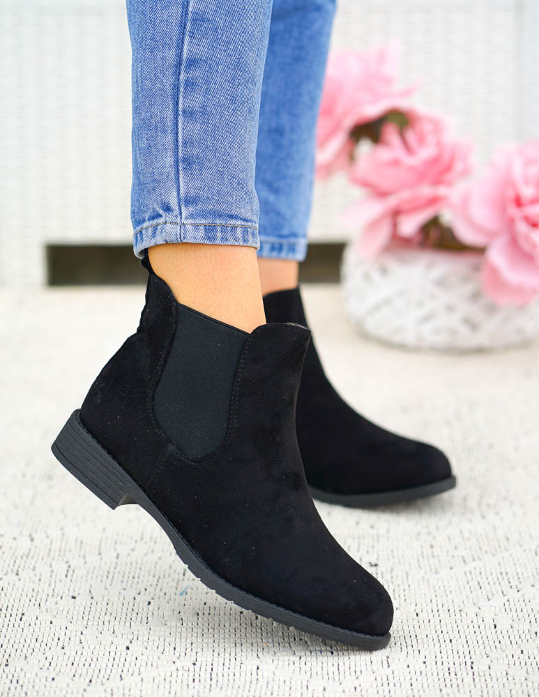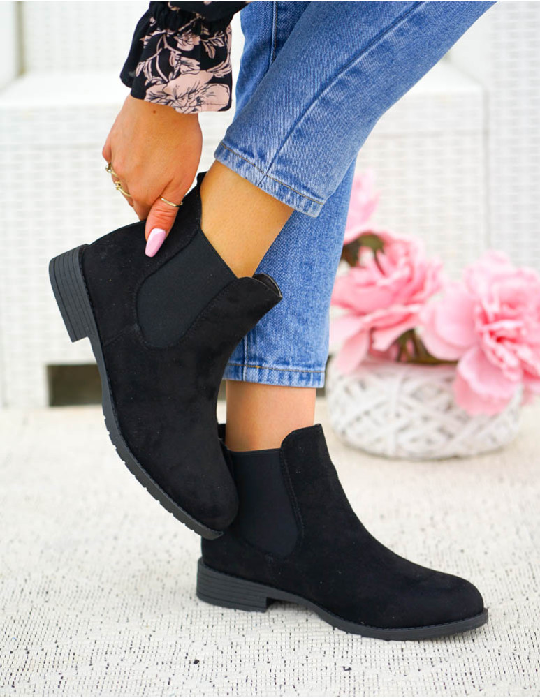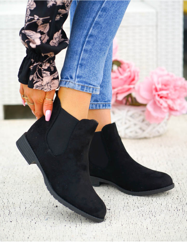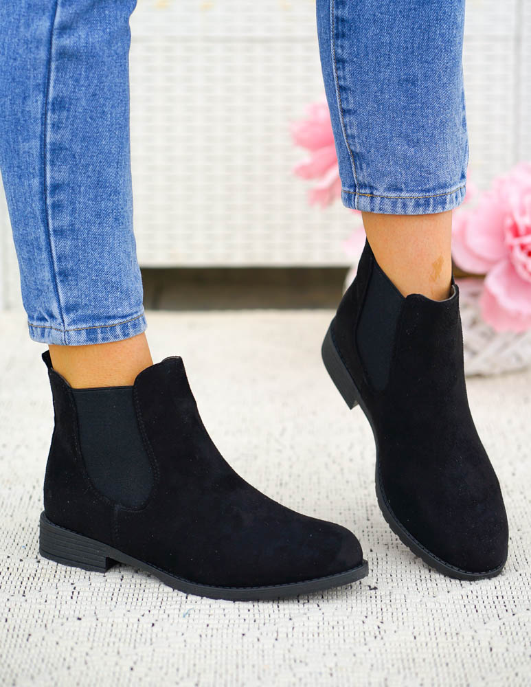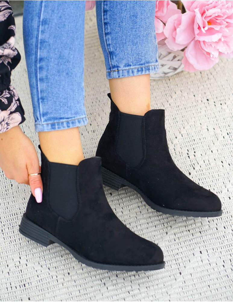 Czarne Klasyczne Zamszowe Botki Na Obcasie Fenny