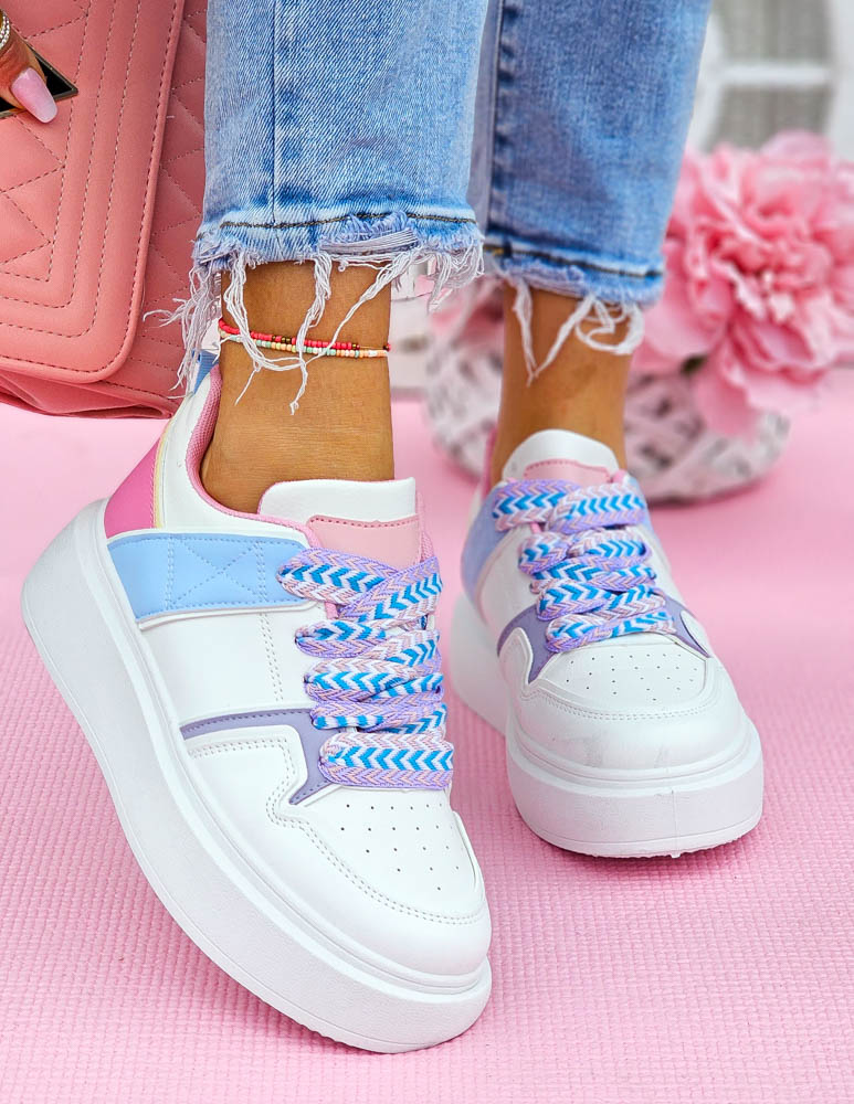 ❤ Kolorowe adidasy z eco skóry na grubej podeszwie❤ Modne buty sportowe z grubymi sznurówkami