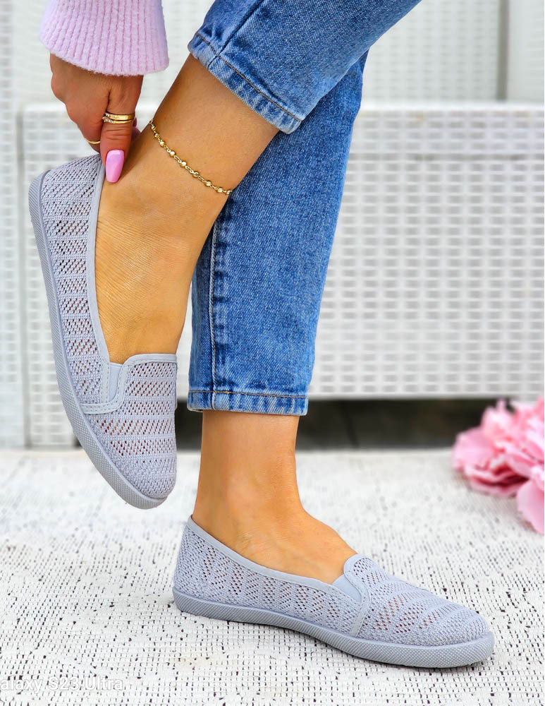 ❤Szare, koronkowe elastyczne tenisówki z przewiewnej tkaniny❤Wysyłka 24 h❤Lekkie, wygodne buty damsk..