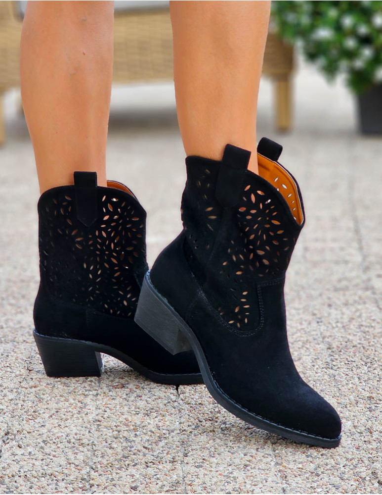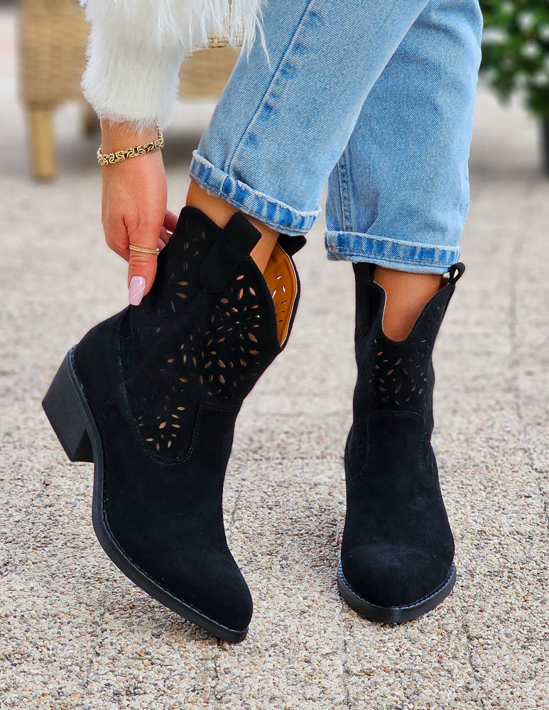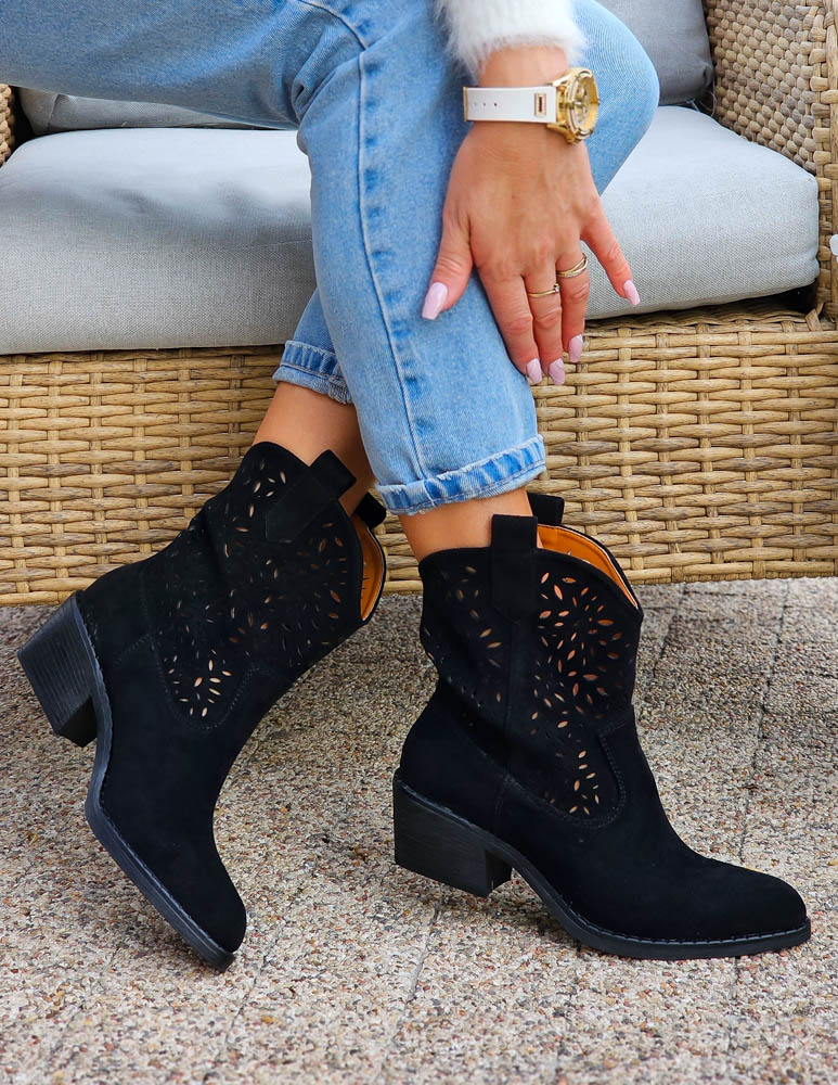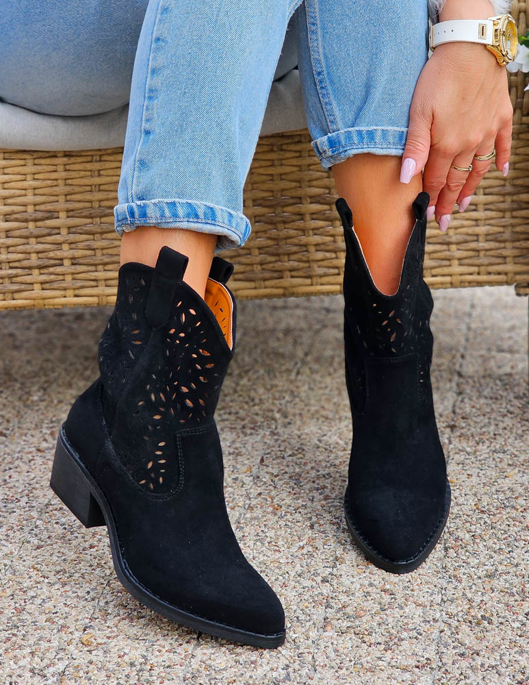 - Kod produktu: Czarne Ażurowe Botki Kowbojki Na Słupku South