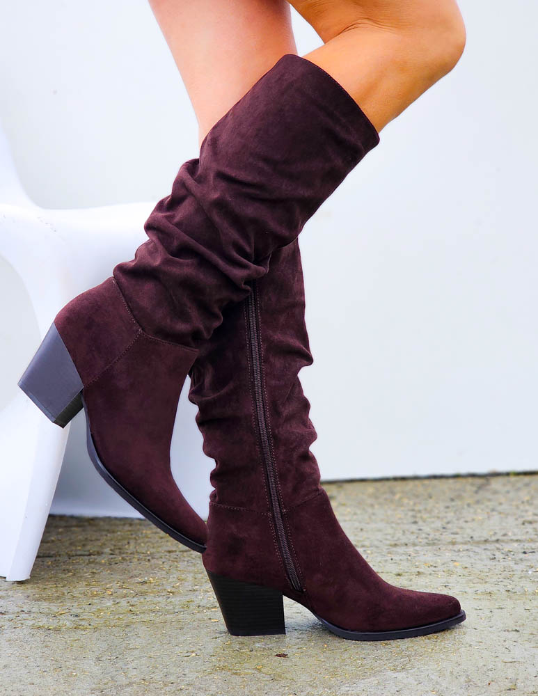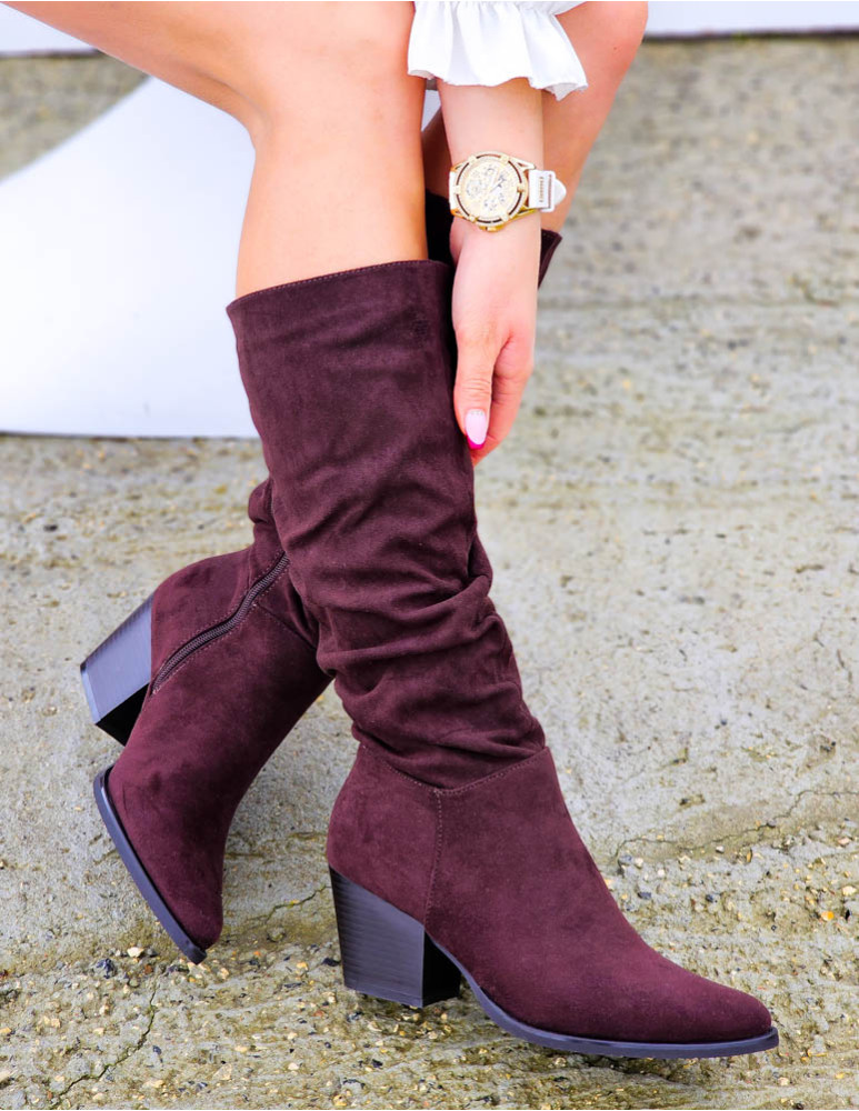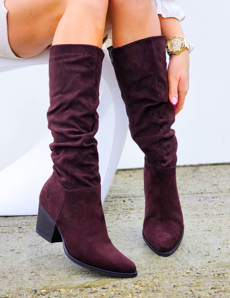 Czekoladowe Zamszowe Kozaki Na Klocku Suzan