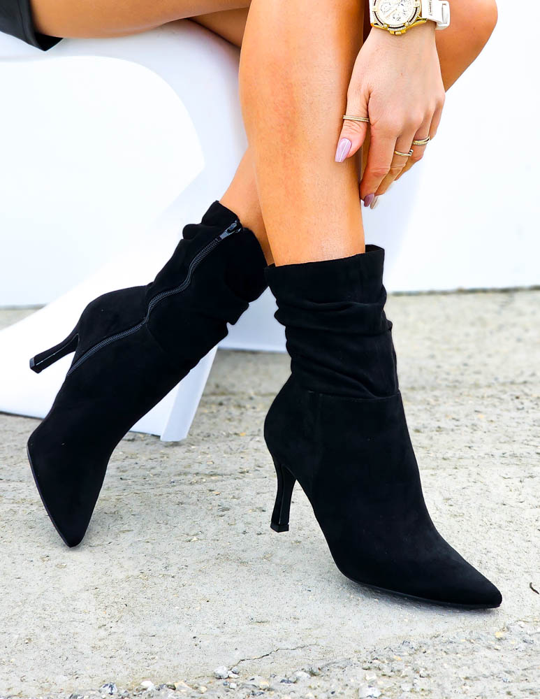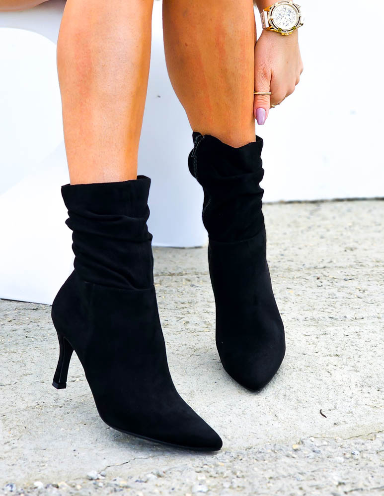 Czarne Klasyczne Zamszowe Botki Na Obcasie Fenny