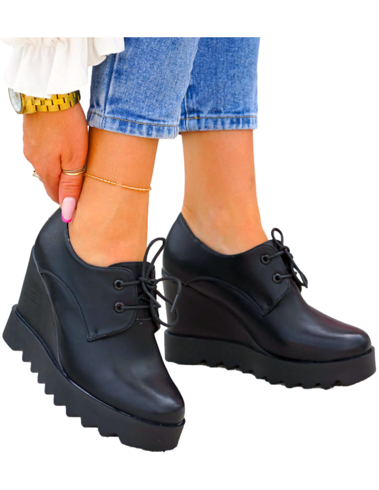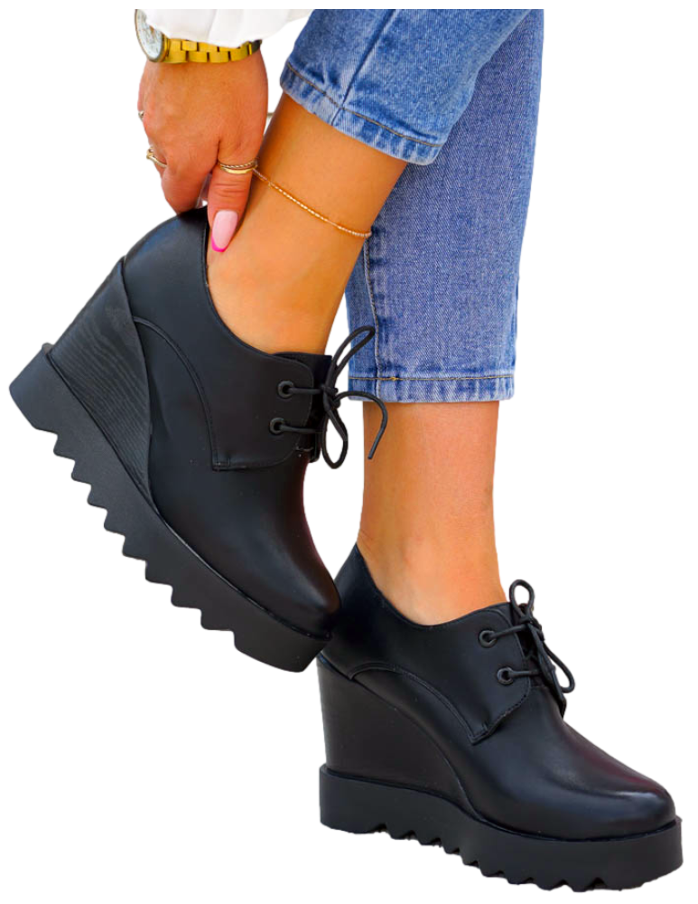 Klasyczne, eleganckie, sznurowane botki na koturnie