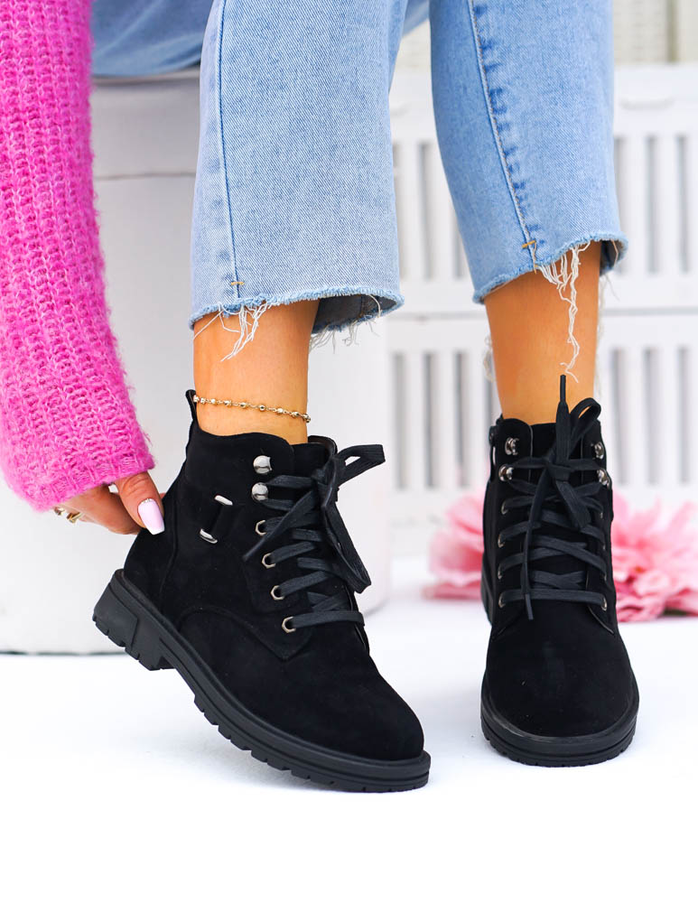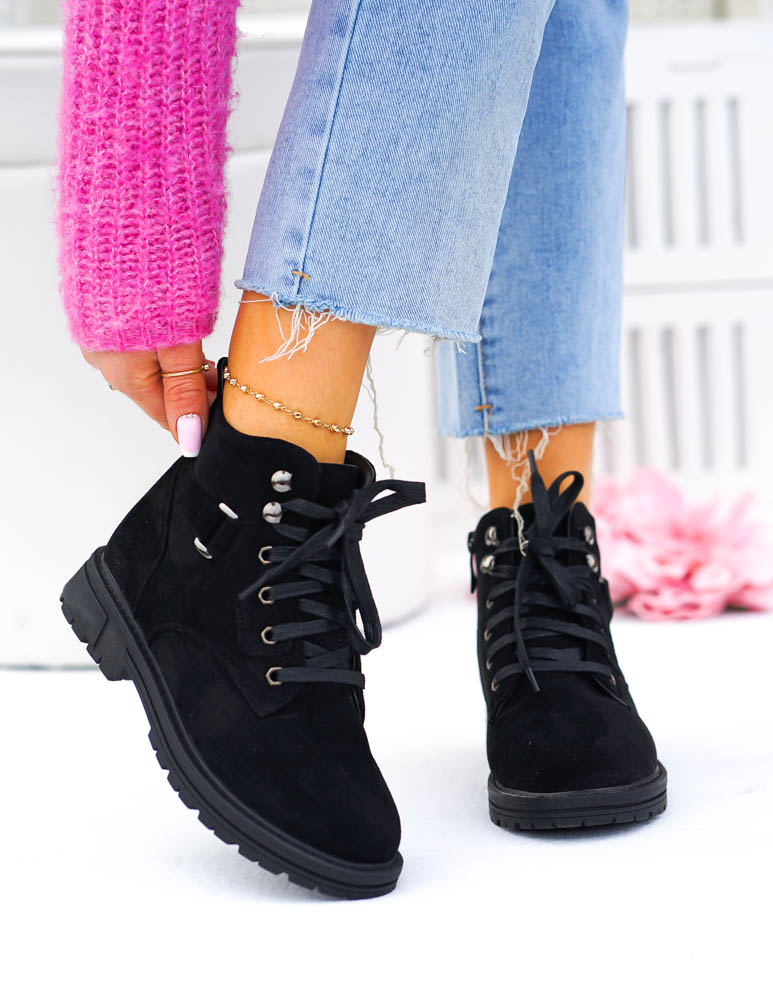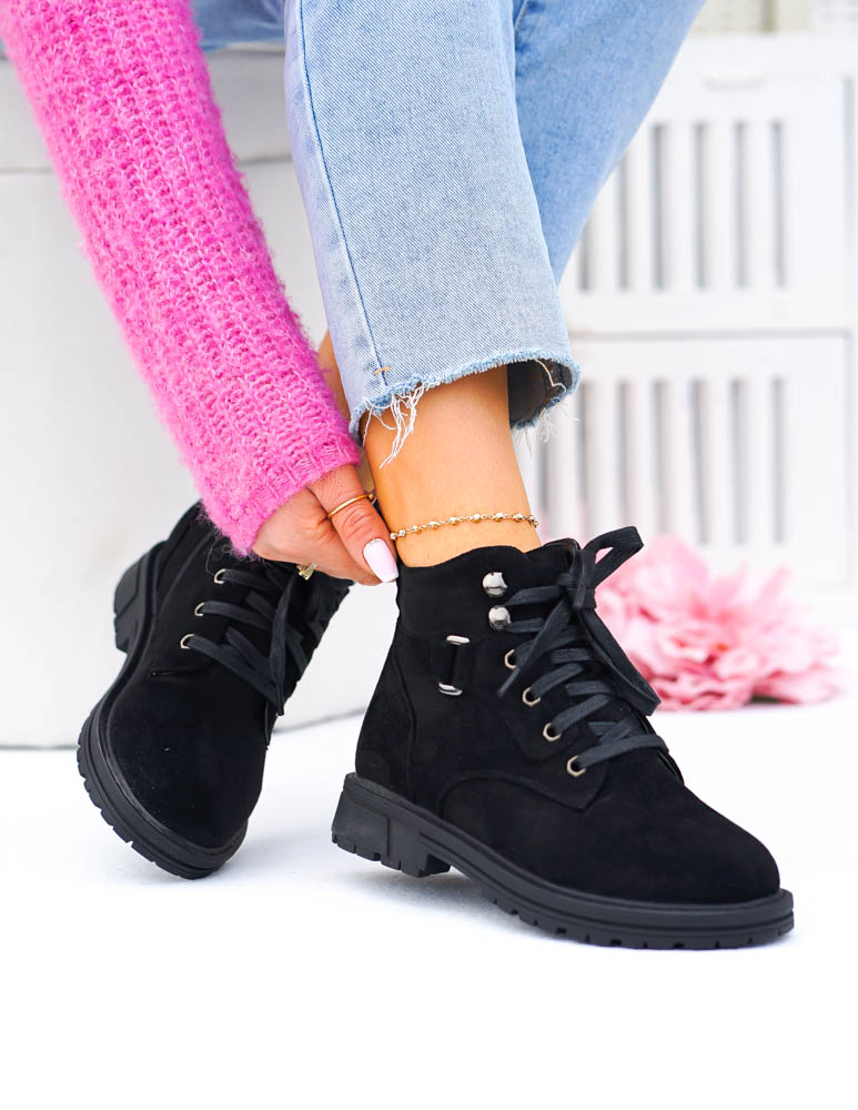 - Kod produktu: Krótkie Sznurowane Zamszowe Botki Basic