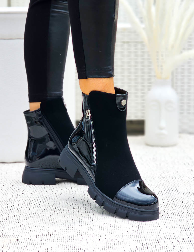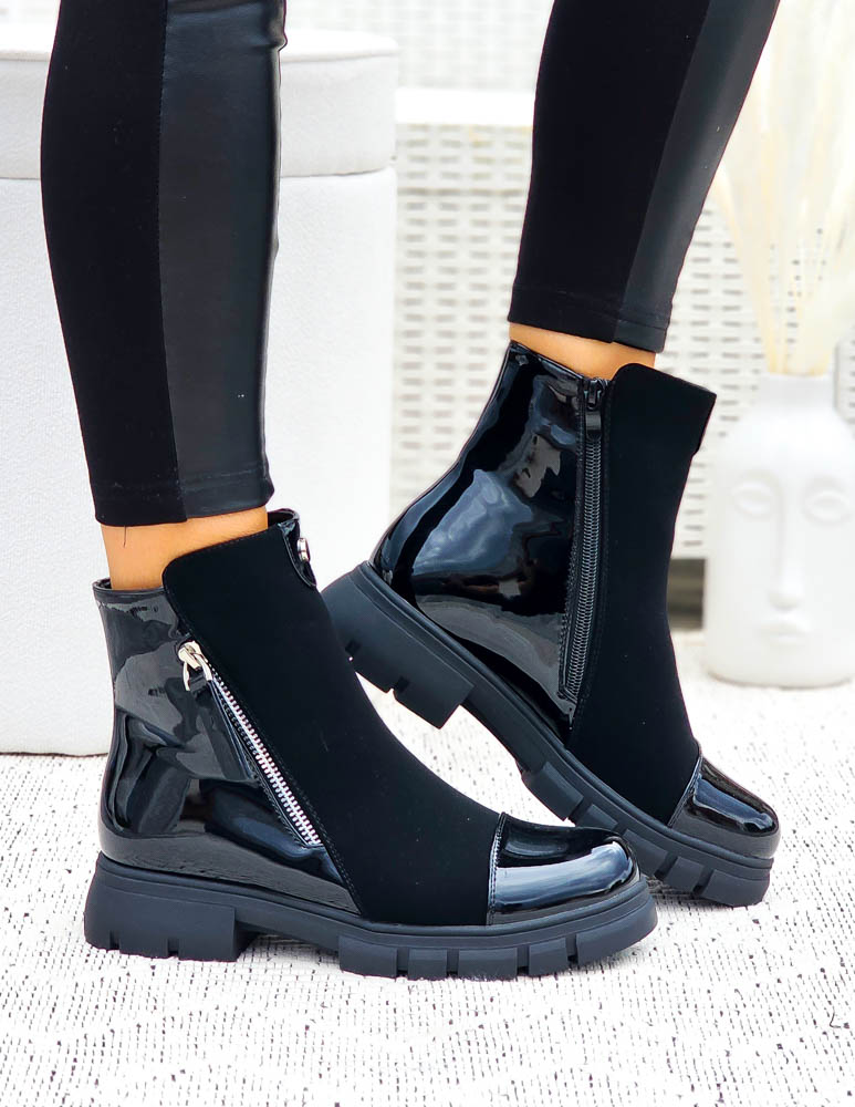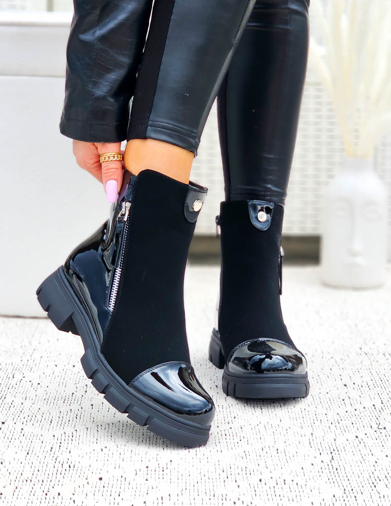 Lakierowane Botki Damskie Workery Z Suwakiem Zpis