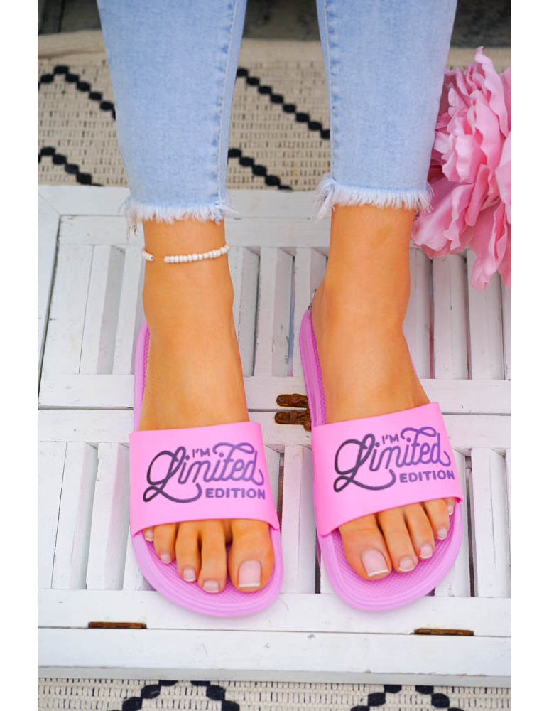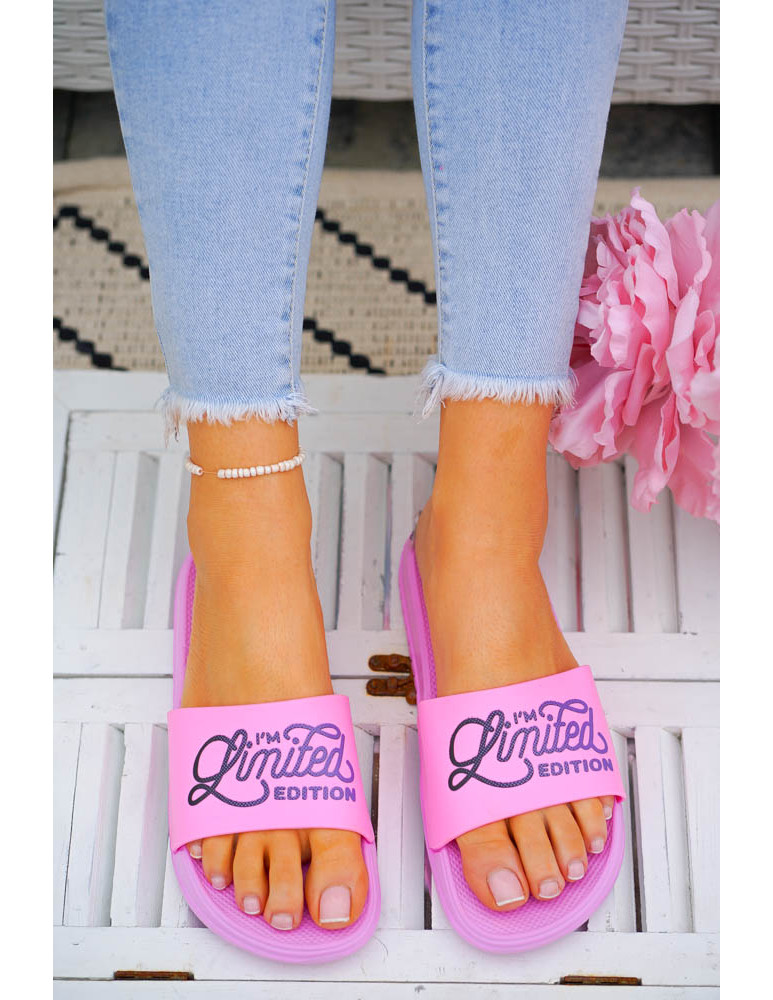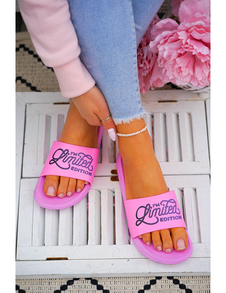 Lekkie klapki damskie z modnym kolorowym napisem