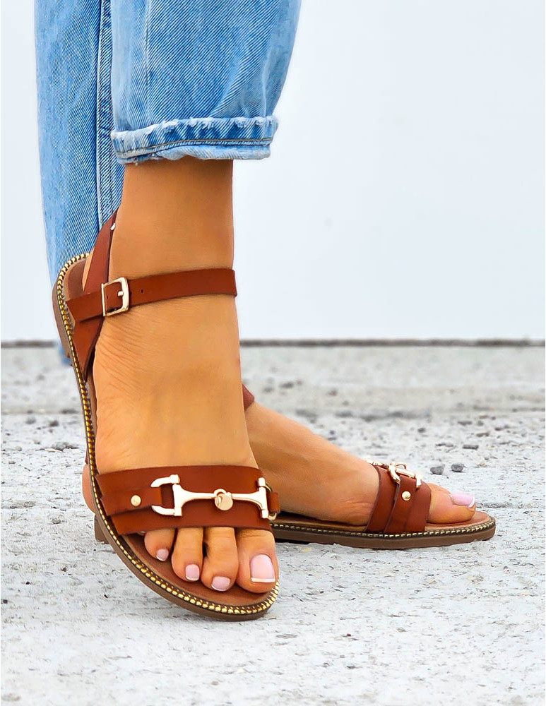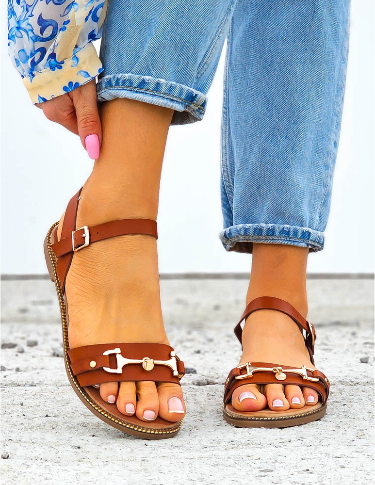 - Kod produktu: Lekkie Brązowe Sandałki Na płaskiej Podeszwie Selen